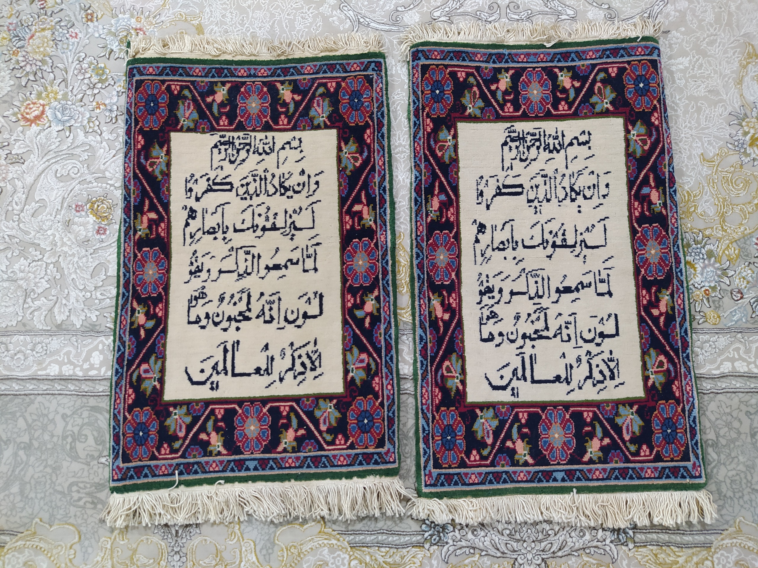 جفت تابلو فرش دستباف قدیمی آیه وانیکاد ارزشمند