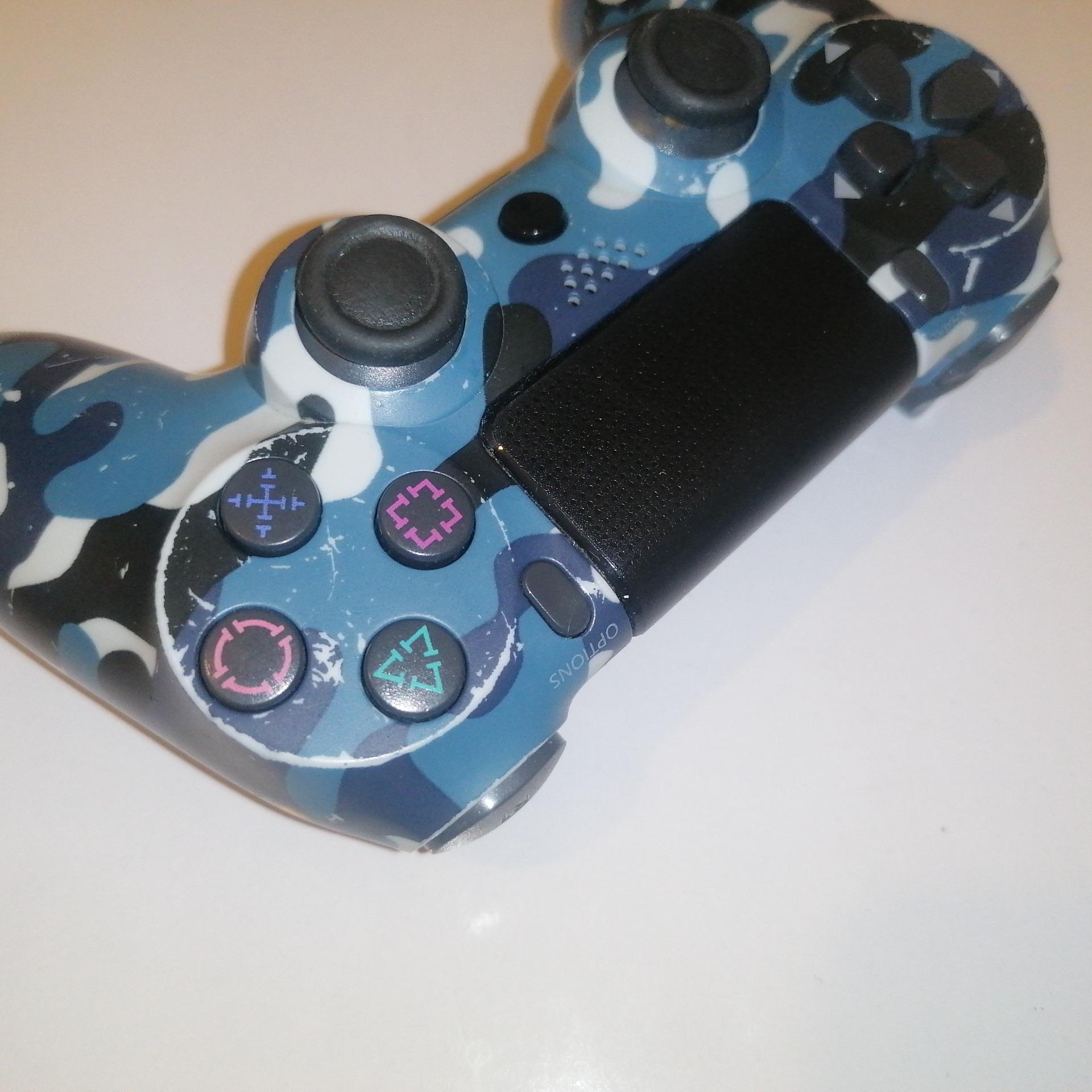 دسته های کپی ps4 رنگ چریکی آبی کاملا تمیز و سالم آنالوگ ها بدون دریفت و تمامی دکمه ها کار میکنه برد و باتری در سلامت کامل هست درجه یک باتری 1000