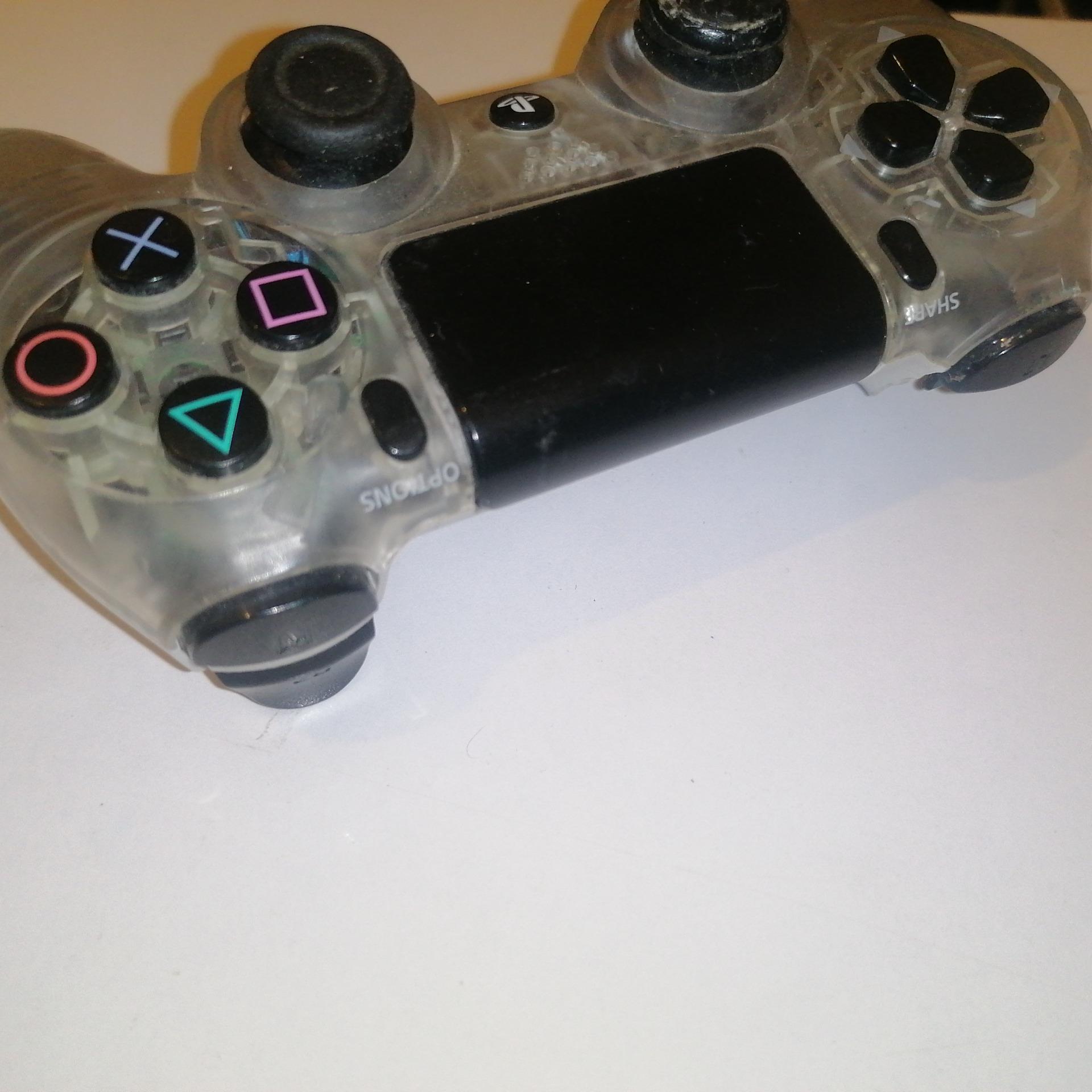 دسته های کپی ps4 رنگ شیشه ای سفید کاملا تمیز و سالم آنالوگ ها بدون دریفت و تمامی دکمه ها کار میکنه برد و باتری در سلامت کامل هست درجه یک باتری 1000