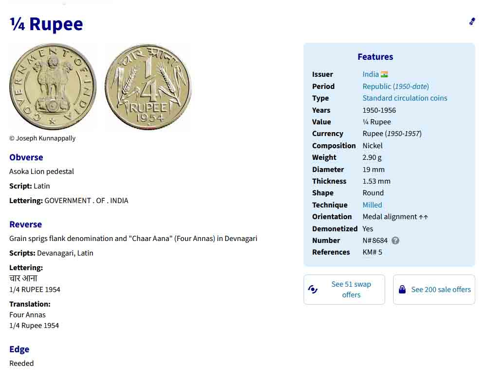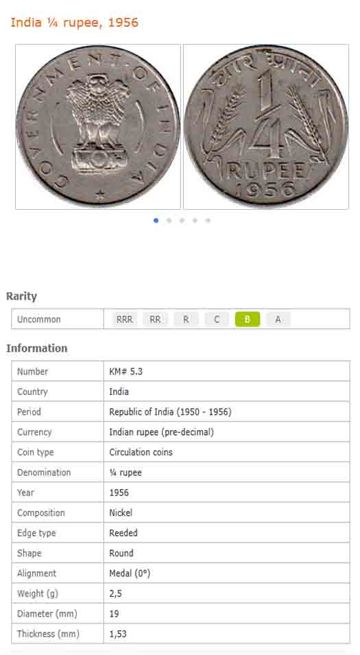 سکه کوارتر روپیه هند 1956 (نایاب)