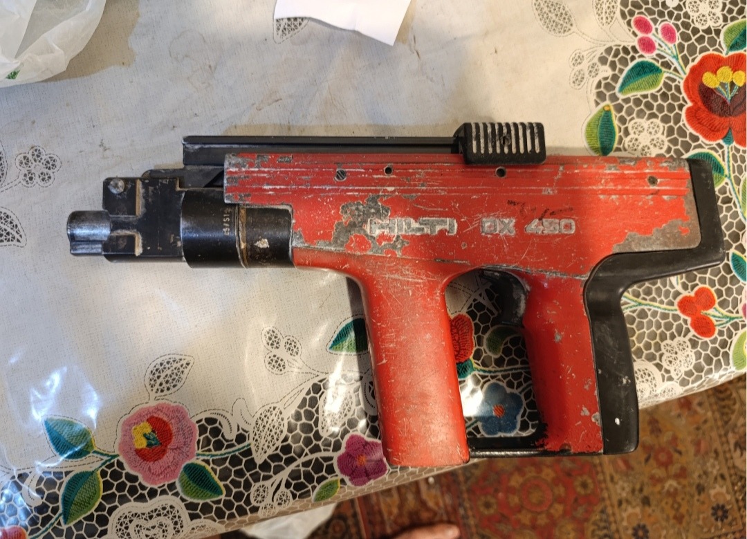 تفنگ hilti مدل dx 450 تفنگ سالم سالم و قابل استفاده هستش فقط جعبه و متعلقات نداره با چاشنی تست شده هم برای اسکلت بتن استفاده میشه و هم برای اسکلت فلز.