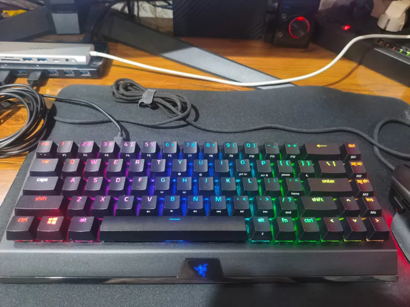 کیبورد فوق العاده ریز مینی هایپراسپید با دکمه های مکانیکال گرین سوییچ ریزر کلید های فوق العاده تک تایل با صدای فراموش نشدنی و قابلیت بلوتوث و دانگل 2.4 گیگاهرتزی و باشیم . بسته بندی کاملکابل باکیفیت ریز اصلی با خودش است .فیزیکی 100 درصد سالم و نو درحد تست ازش استفاده شده است تضمینی من روی تی وی با کنترلر بازی میکنم این کیبورد همینجور دست نخورده روی اون هم کشیده بوده بسیار تمیز در حد نو .