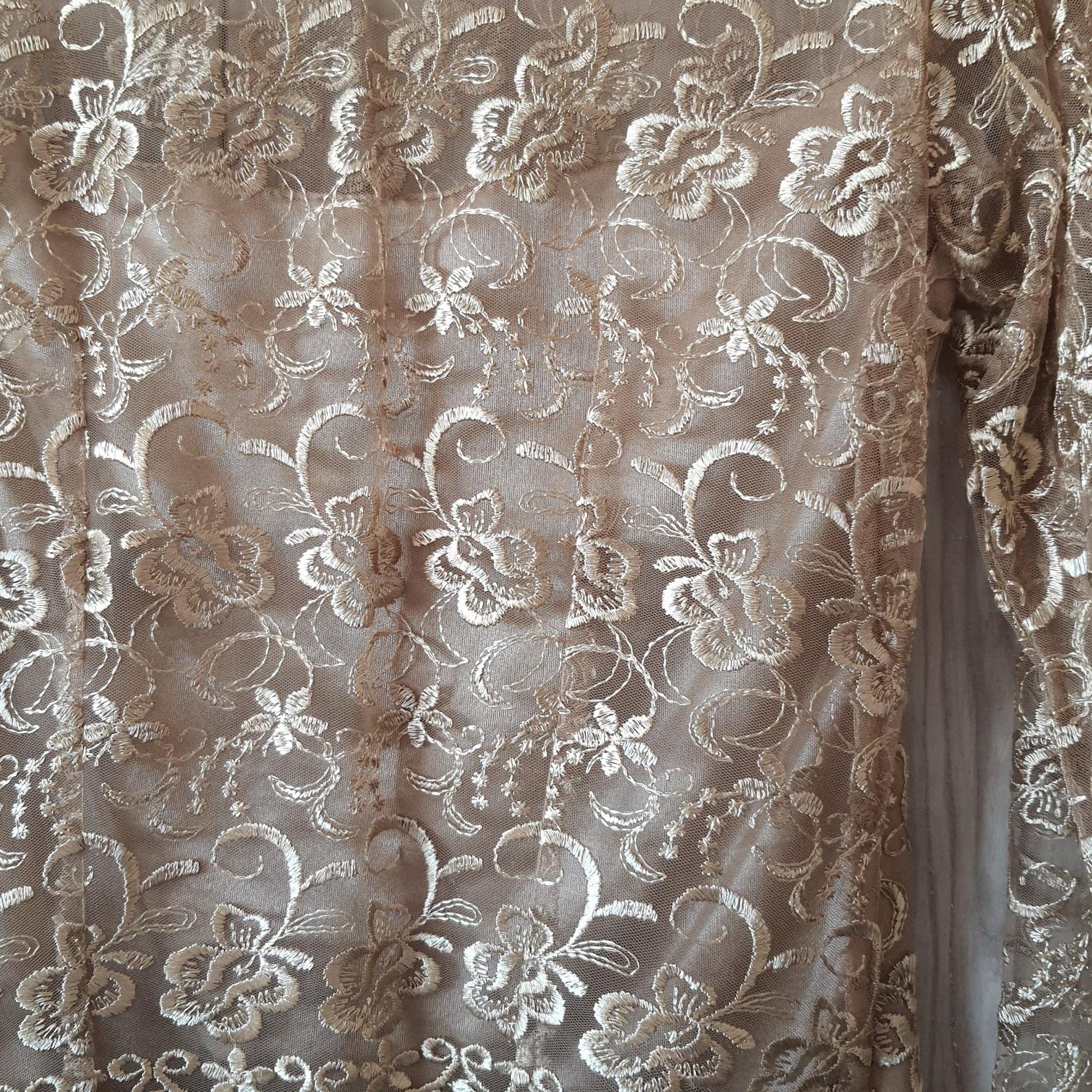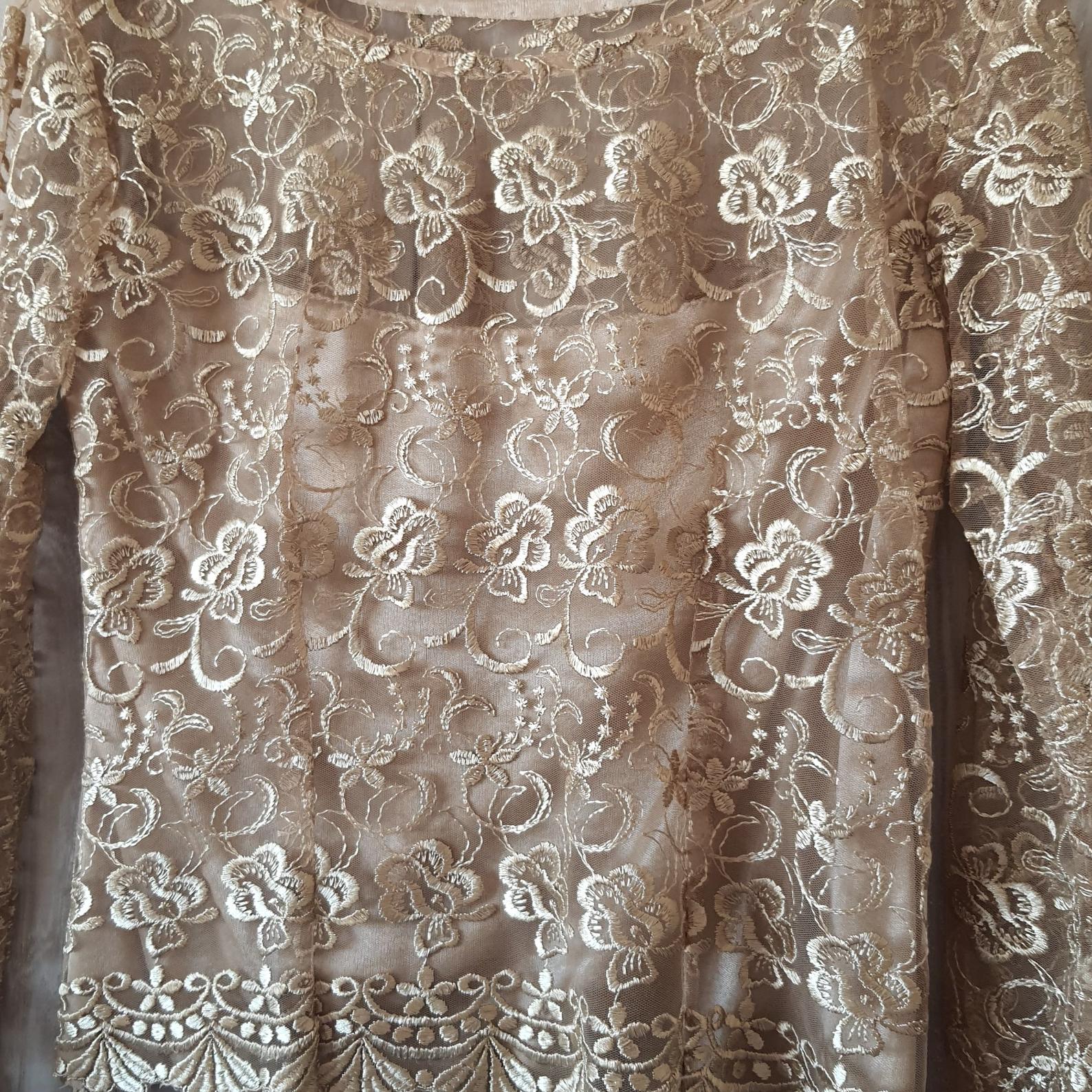 بلوز گیپور هندی یقه قایقی مناسب سایز 42تا44طلایی مزون دوزیکبار پوشیده شده آستردار