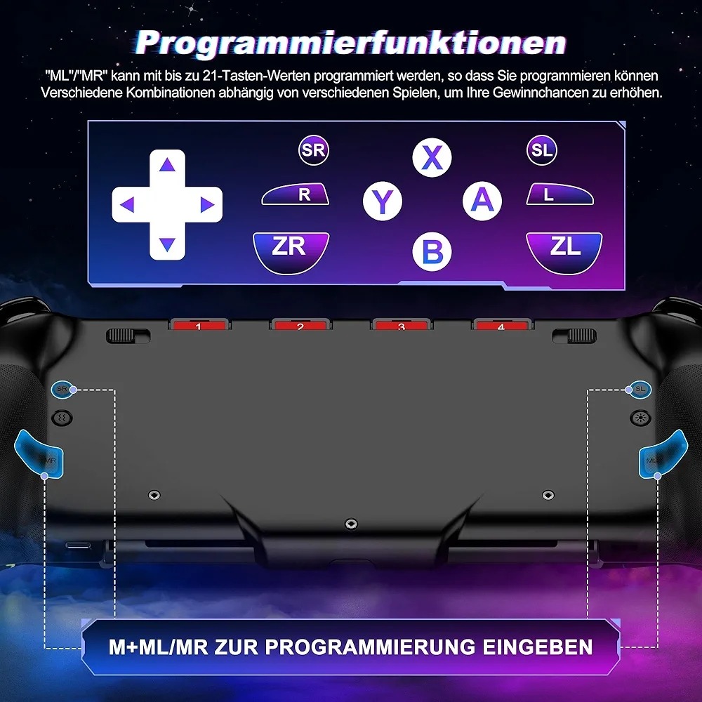 کنترل را با استفاده از یک یا چند تابع، از جمله a+b+y+l+zl+r+zr+d-pad، سفارشی کنید. دکمه های برنامه ریزی حلقه (SR/SL) امکان توالی بی پایانی از ترکیب های شخصی سازی شده را فراهم میکنند که باعث به حداقل رساندن ساییدگی دکمه ها و افزایش عمر کنترلر میشود.