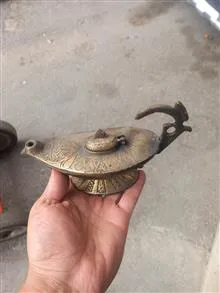 چراغ پیسوز برنجی مدل کشتی با طراحی زیبا وکیفیت خوب دکوری بینظیر هدیه وکادوی ماندگار اندازه حدود 15سانت کار جدید وانتیک