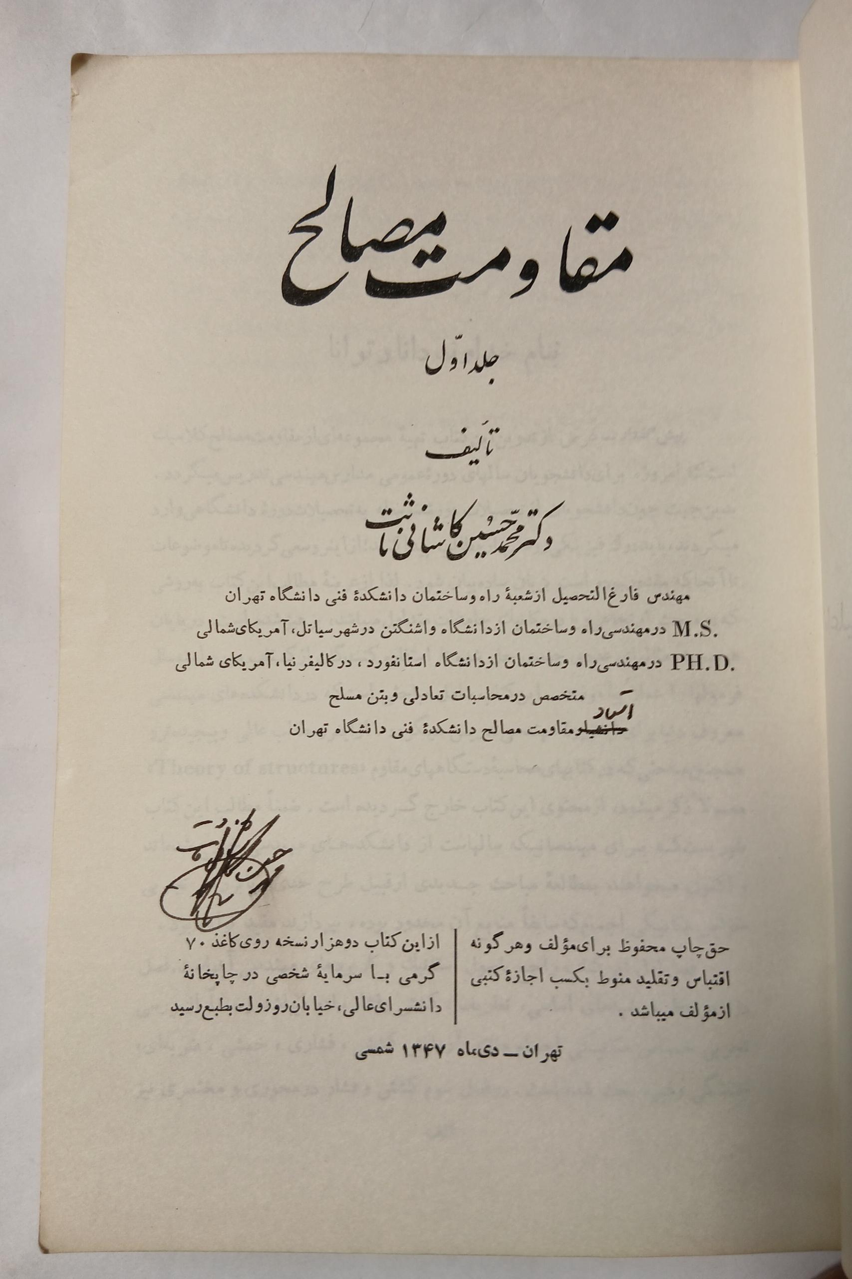 مقاومت مصالح با امضا محمد حسین کاشانی ثابت 12