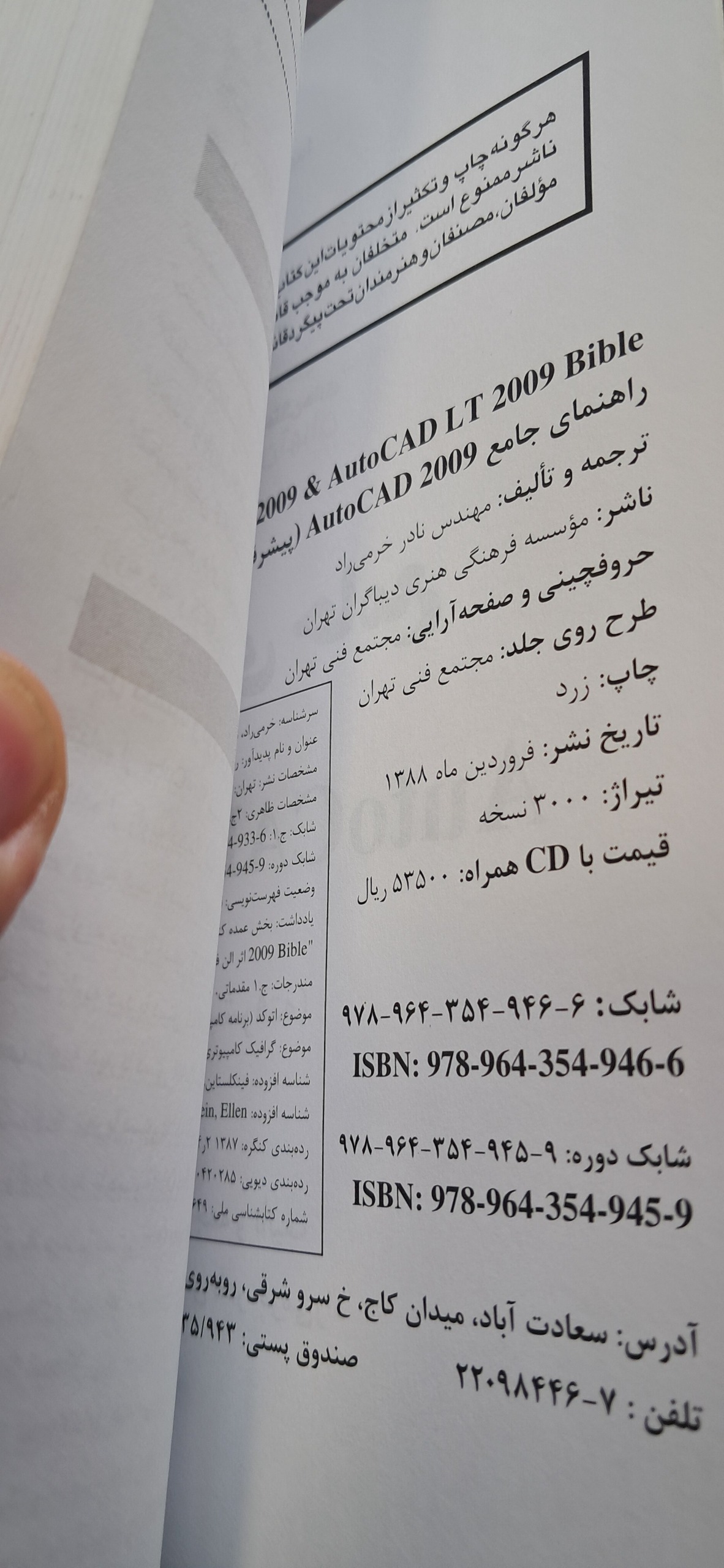 توجه توجه کتاب چاپ 1388 برای اتوکد 2009 . هر دو جلد با هم صد و پنجاه تومان