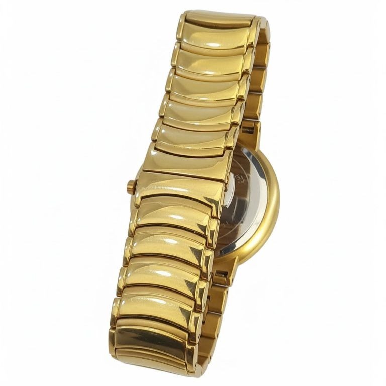 - بدنه و بند طلایی رنگ با روکش براق جلوهای باشکوه و مجلل به این ساعت بخشیده است.