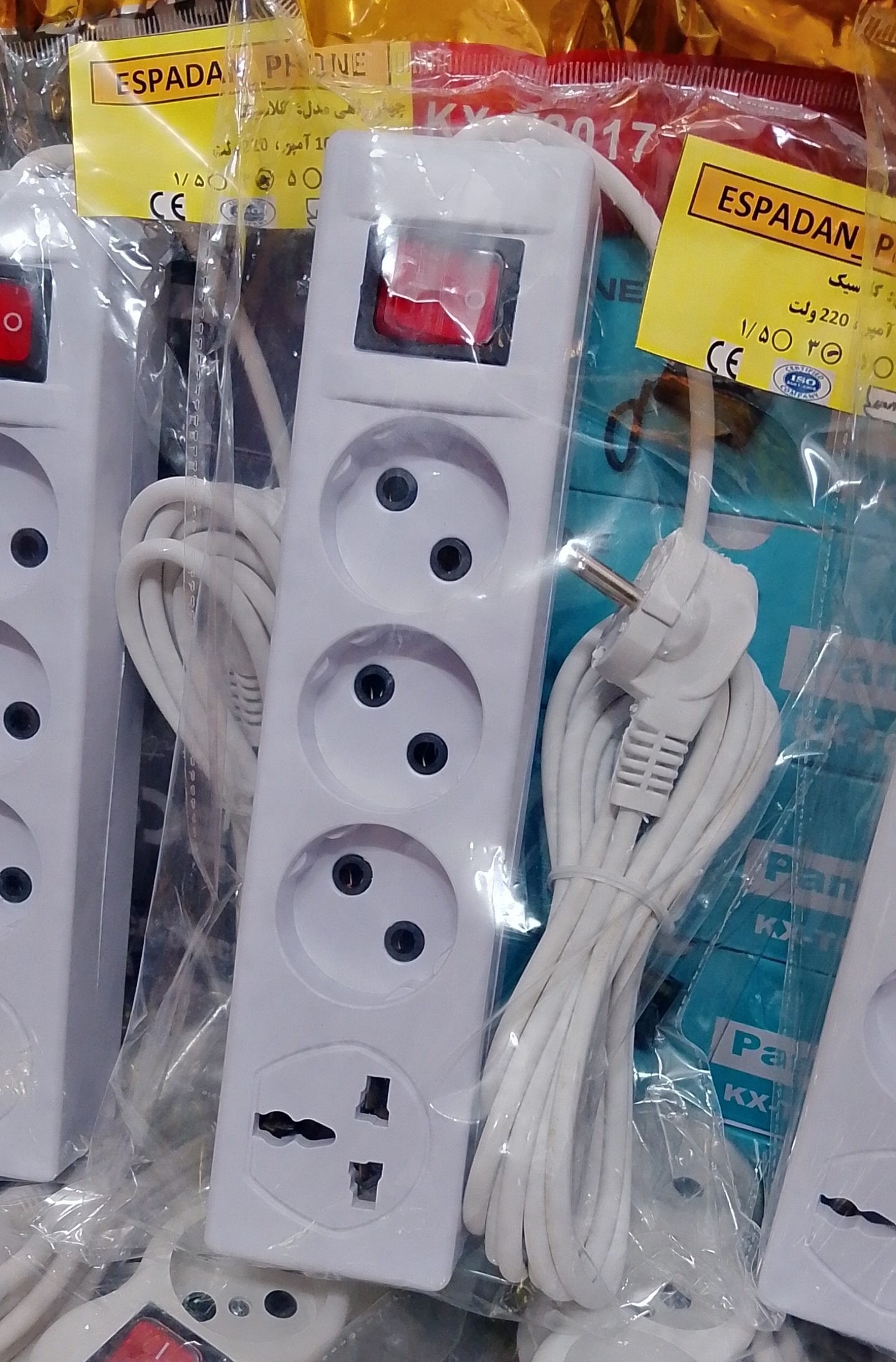 2-سیم سیار رابط برق 3خروجی کلیددار باسیم 3متری