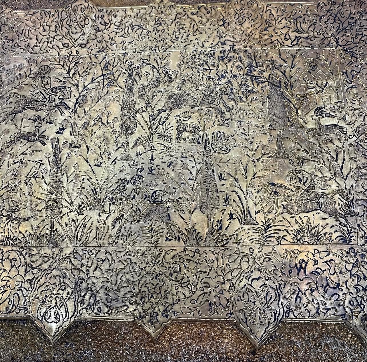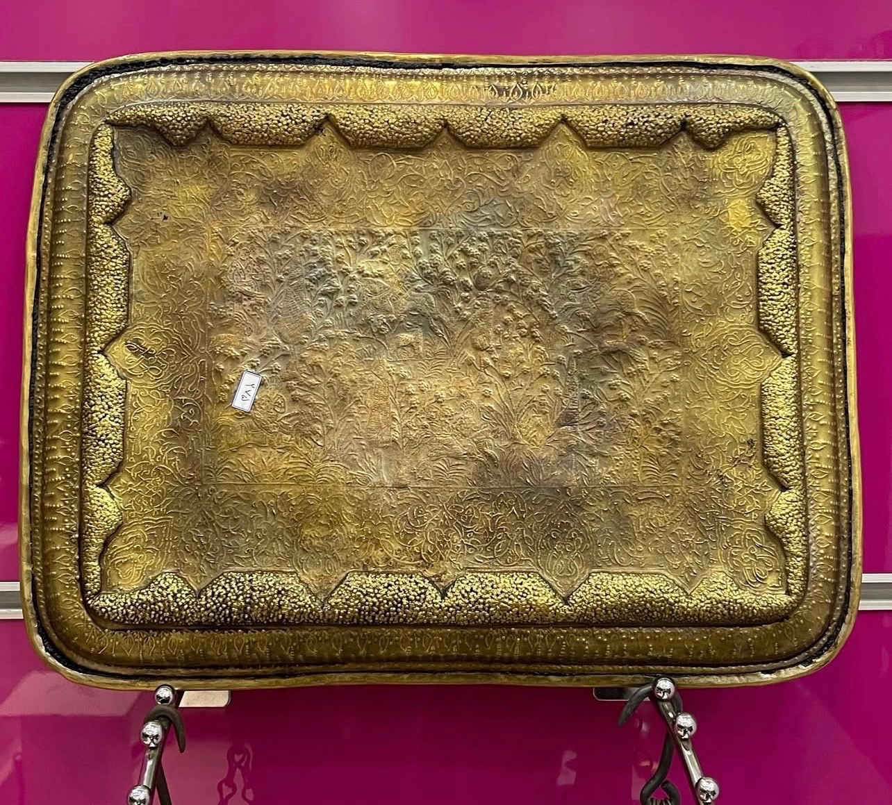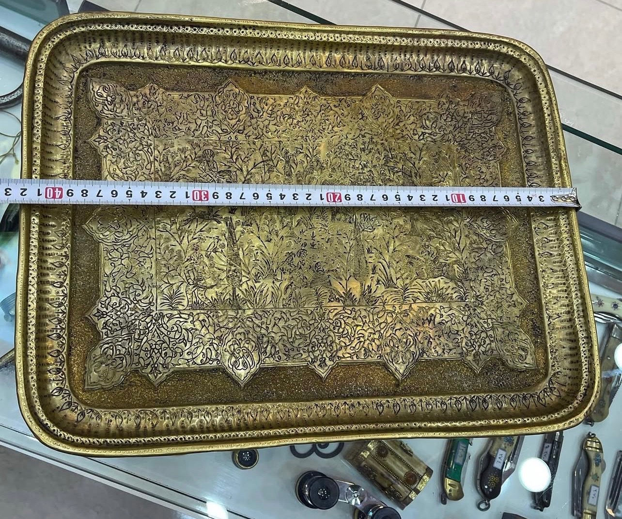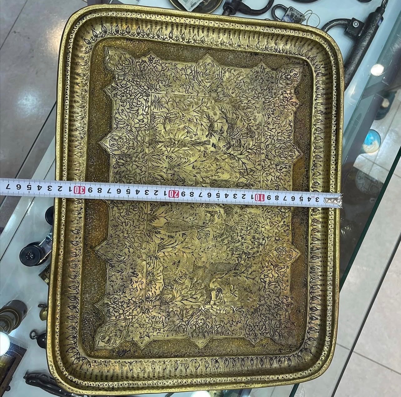 سینی برنجی برجسته ی پرقلم قدمت بالای 230 سال