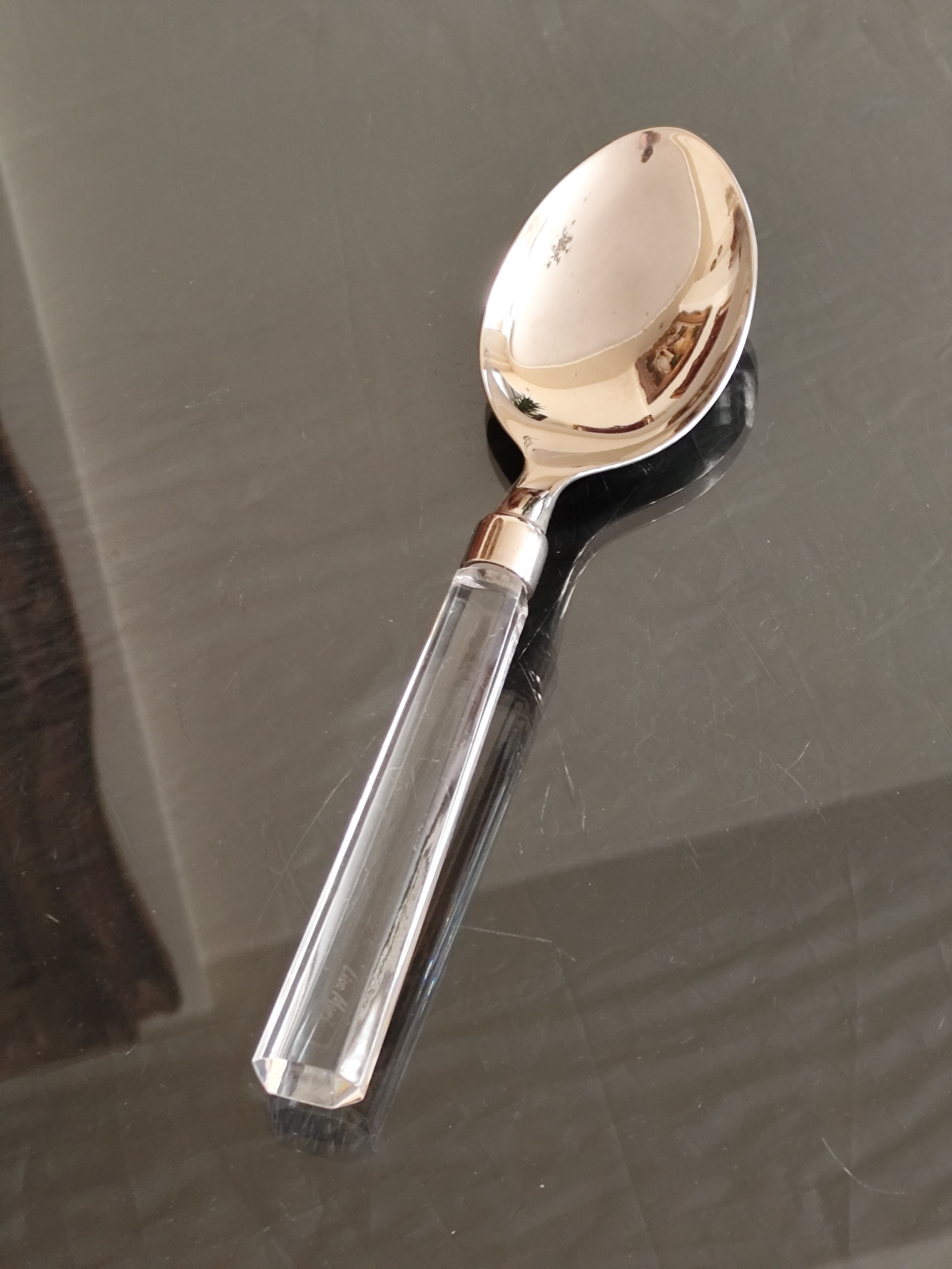 قاشق آجیلخوری لیزاموری اتریش تلفیق سیلور و کریستال با مارک حک شده سالم و تمیز