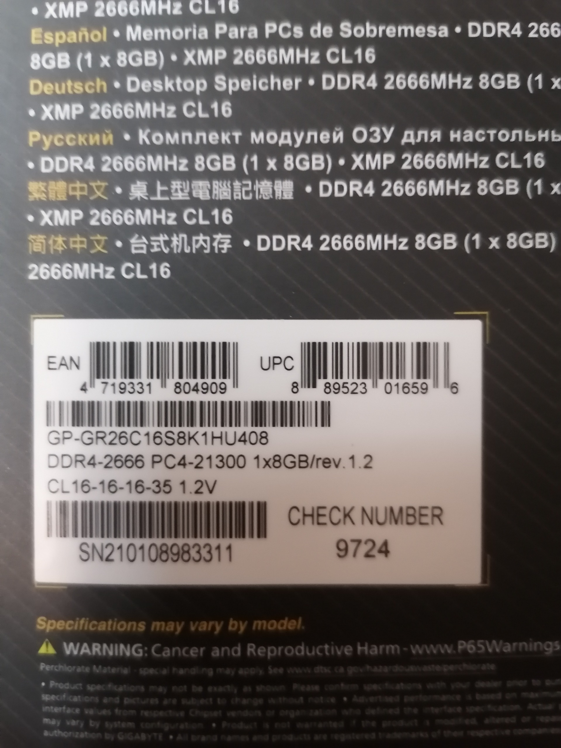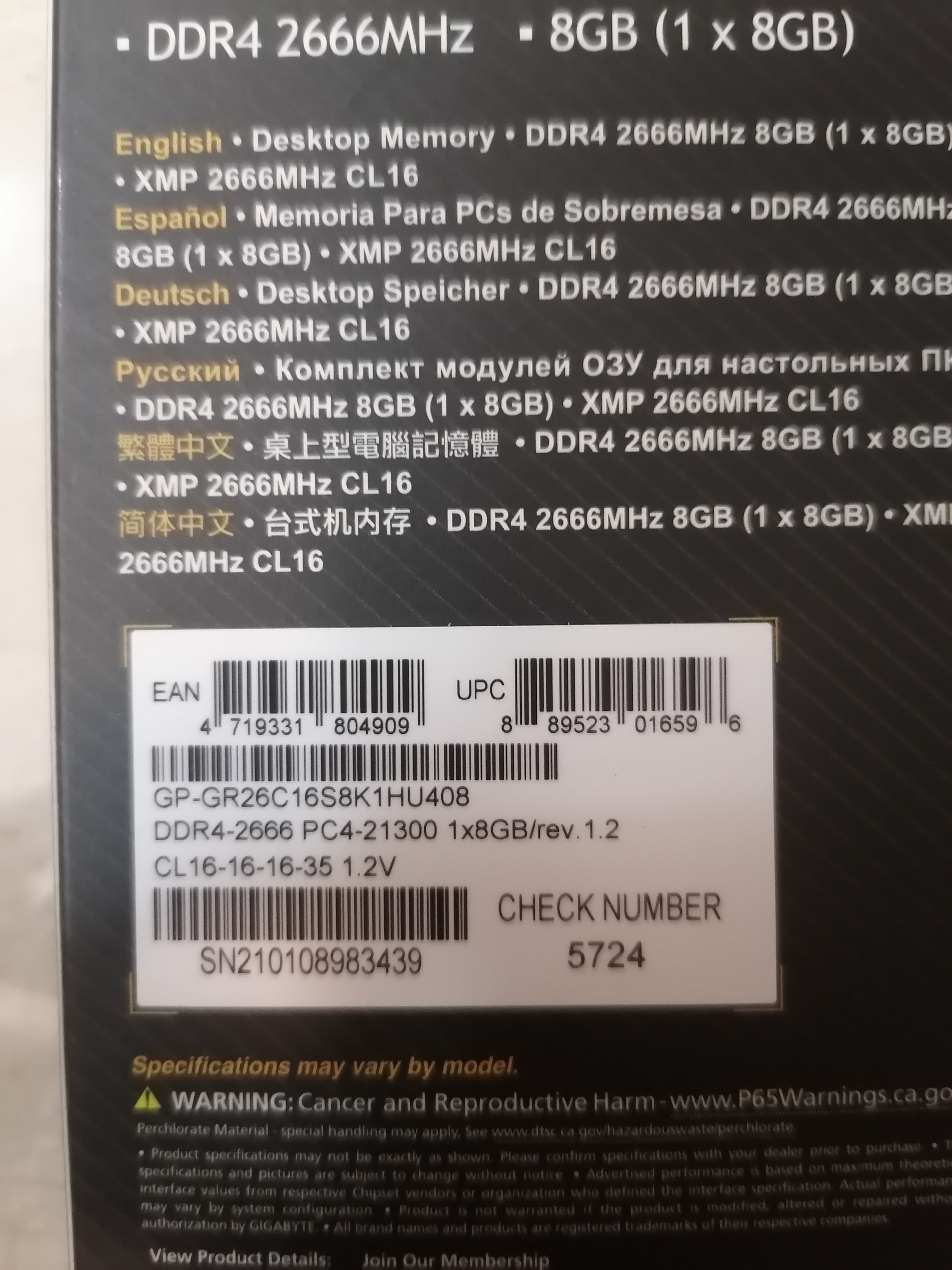 رم گیگابایت تک کاناله 8 گیگ 2666 مگاهرتر