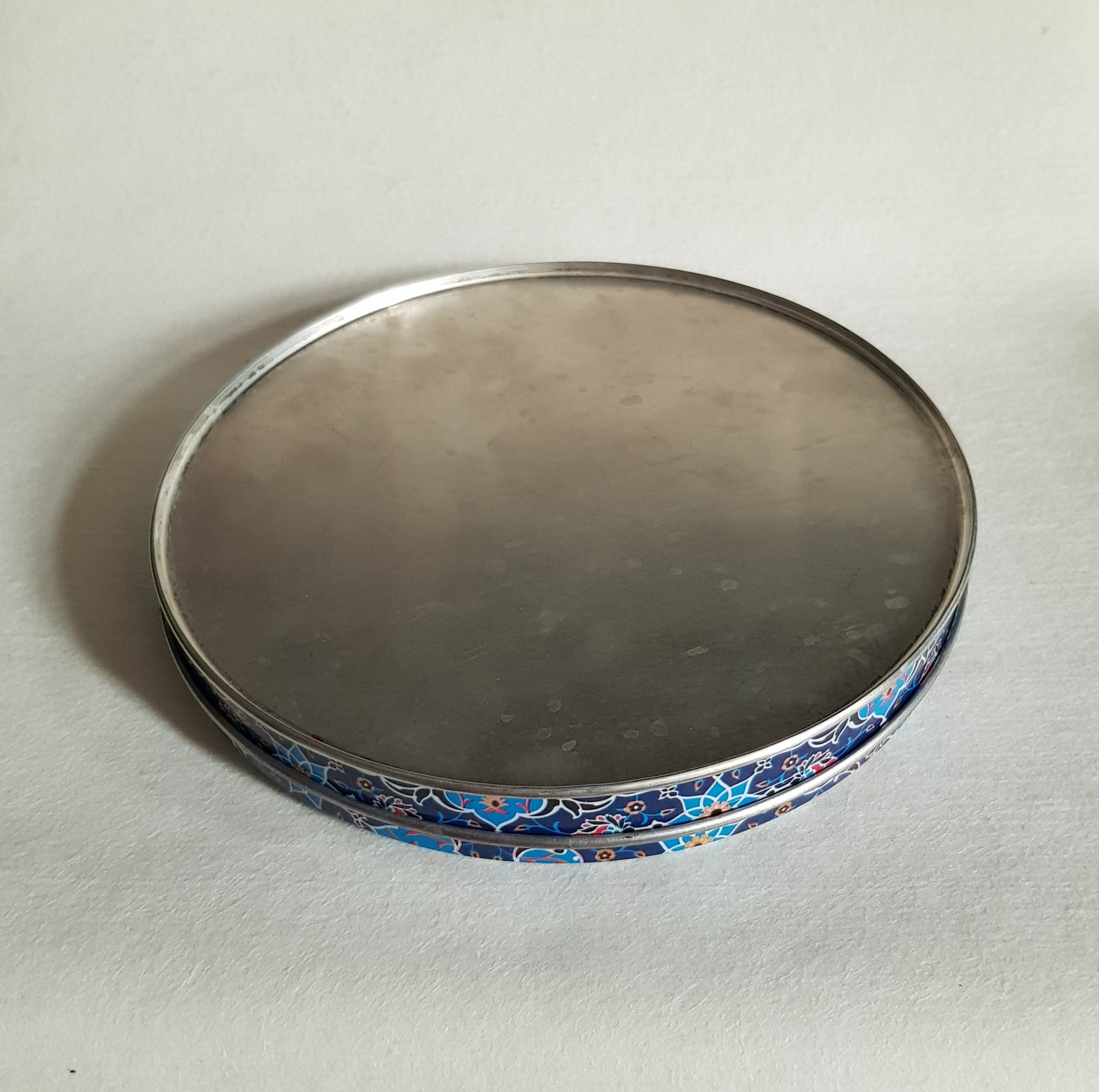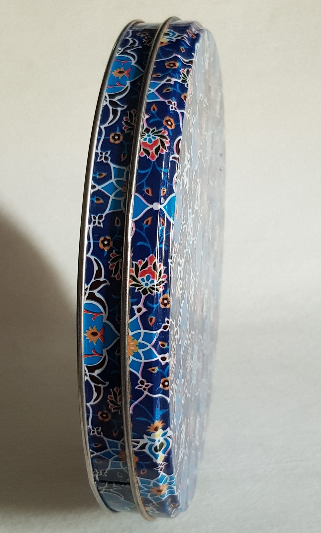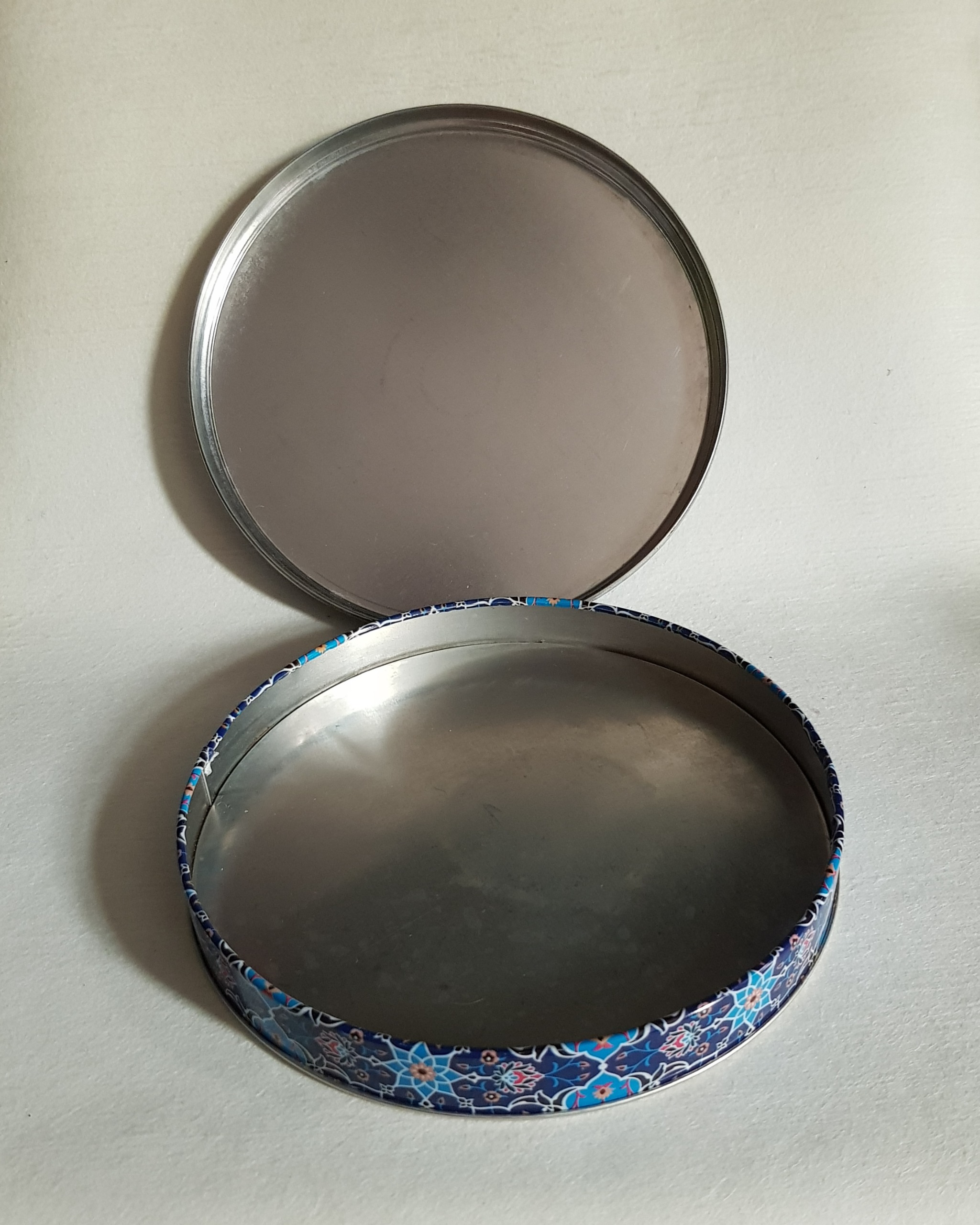 قوطی خالی فلزی گرد با نقوش چاپی چلیپا