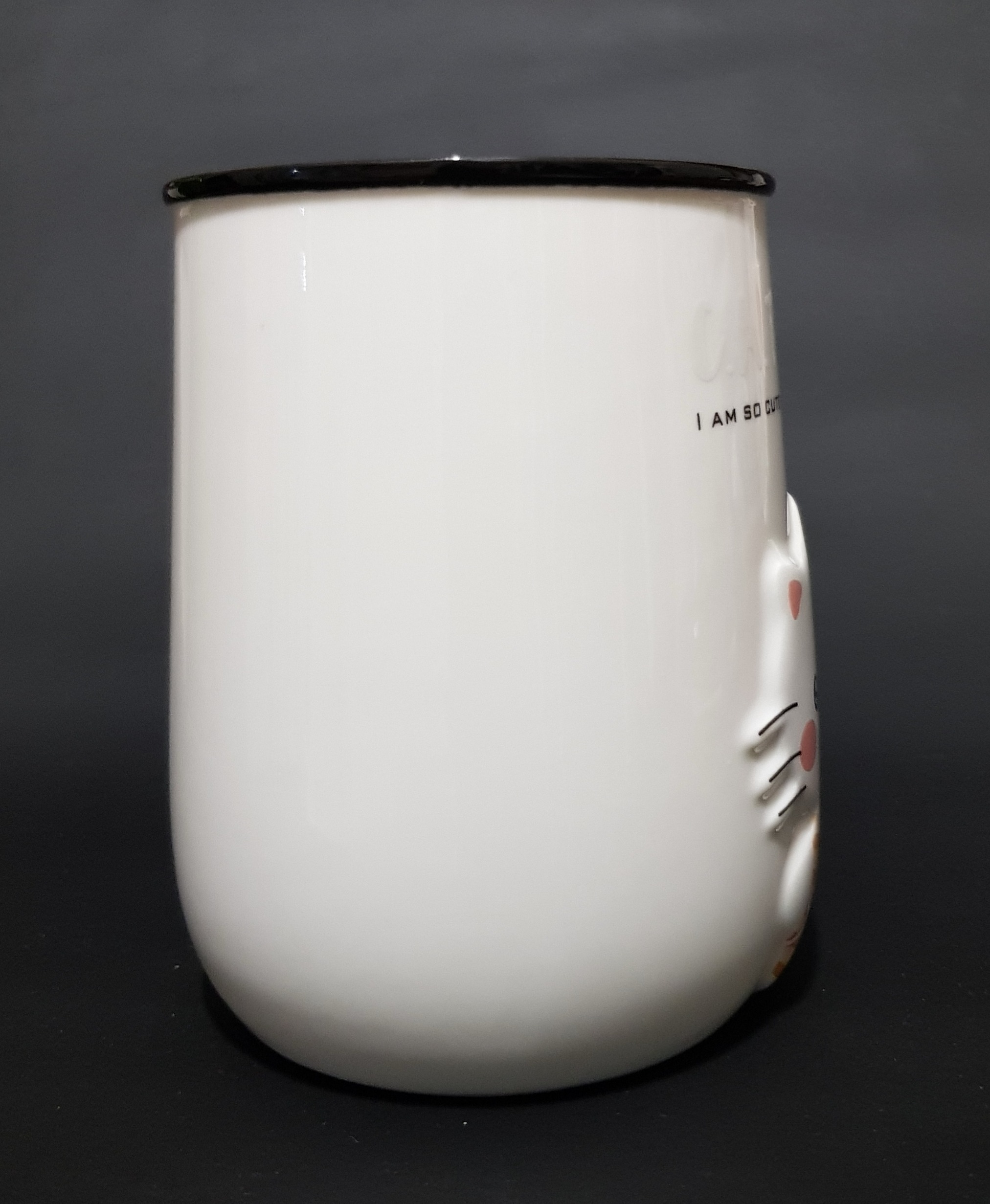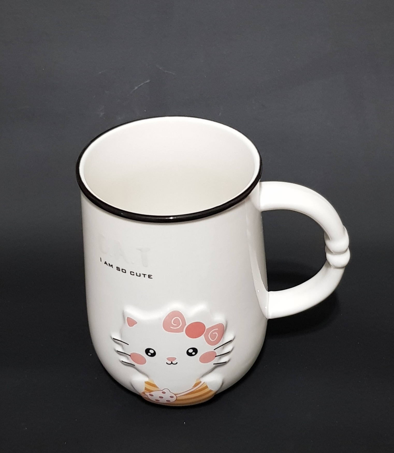 ماگ یا لیوان بزرگ سرامیکی سفید با طرح برجسته گربه کتی