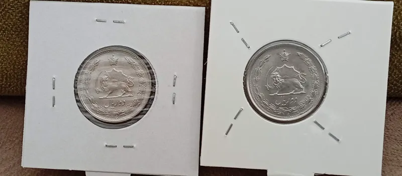 دو عدد سکه دو ریال سوپر بانکی جنس نیکل هر دو عدد با هم 10عدد سکه یک ریال سوپر بانکی سال 1352کل مجموعه 350هزار تومان