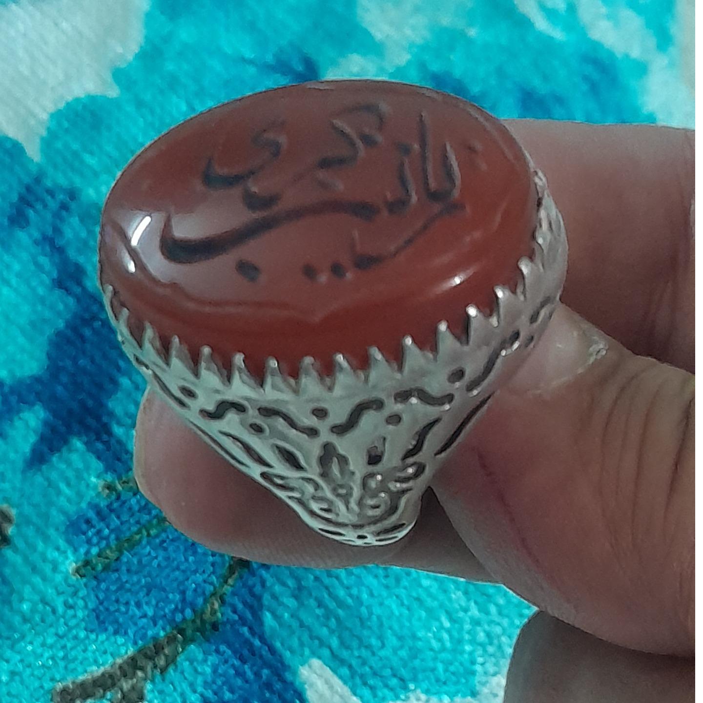 انگشتر نقره عیار 925 با نگین پرتقالی خطی (یا زینب کبری)وزن 25.5گرم قیمت