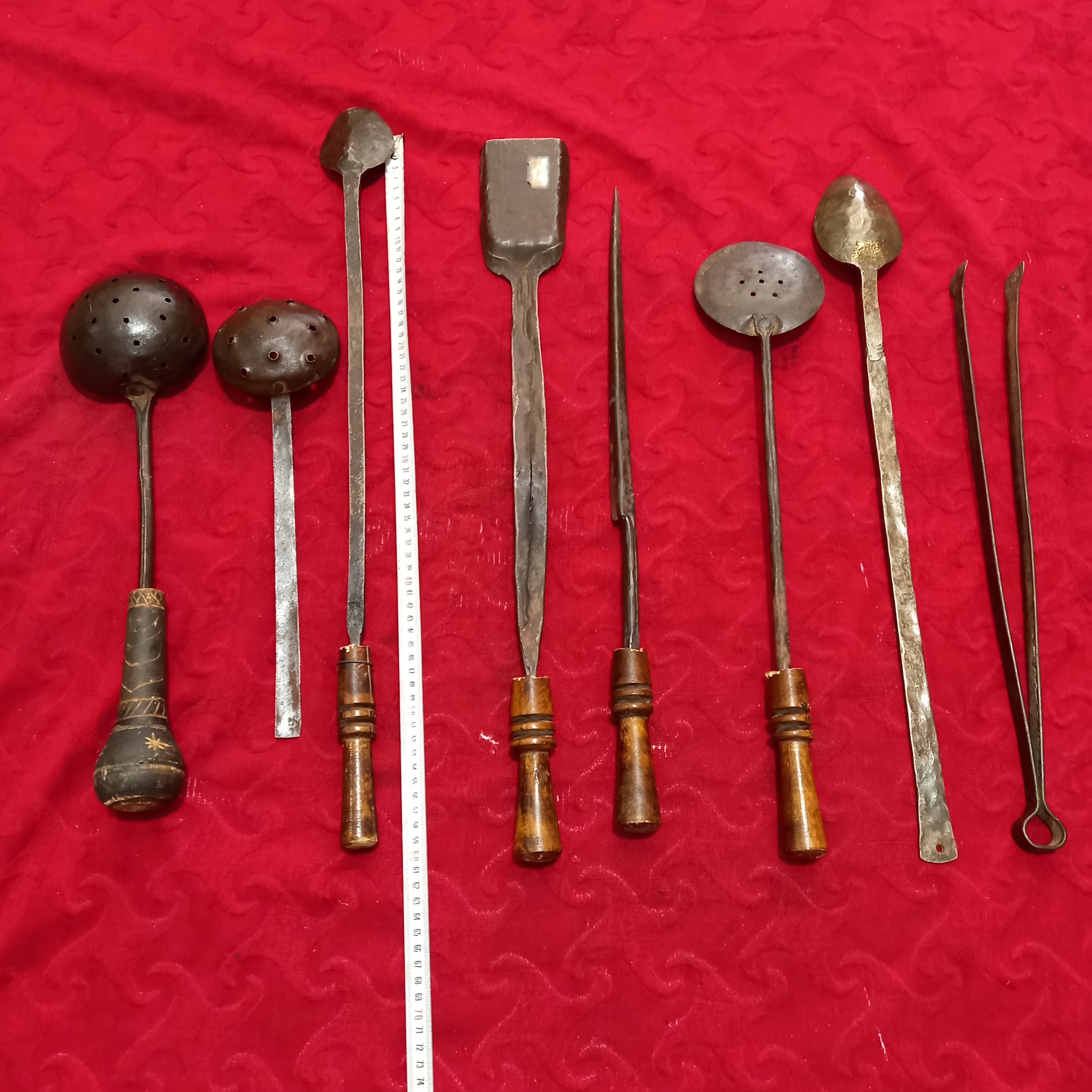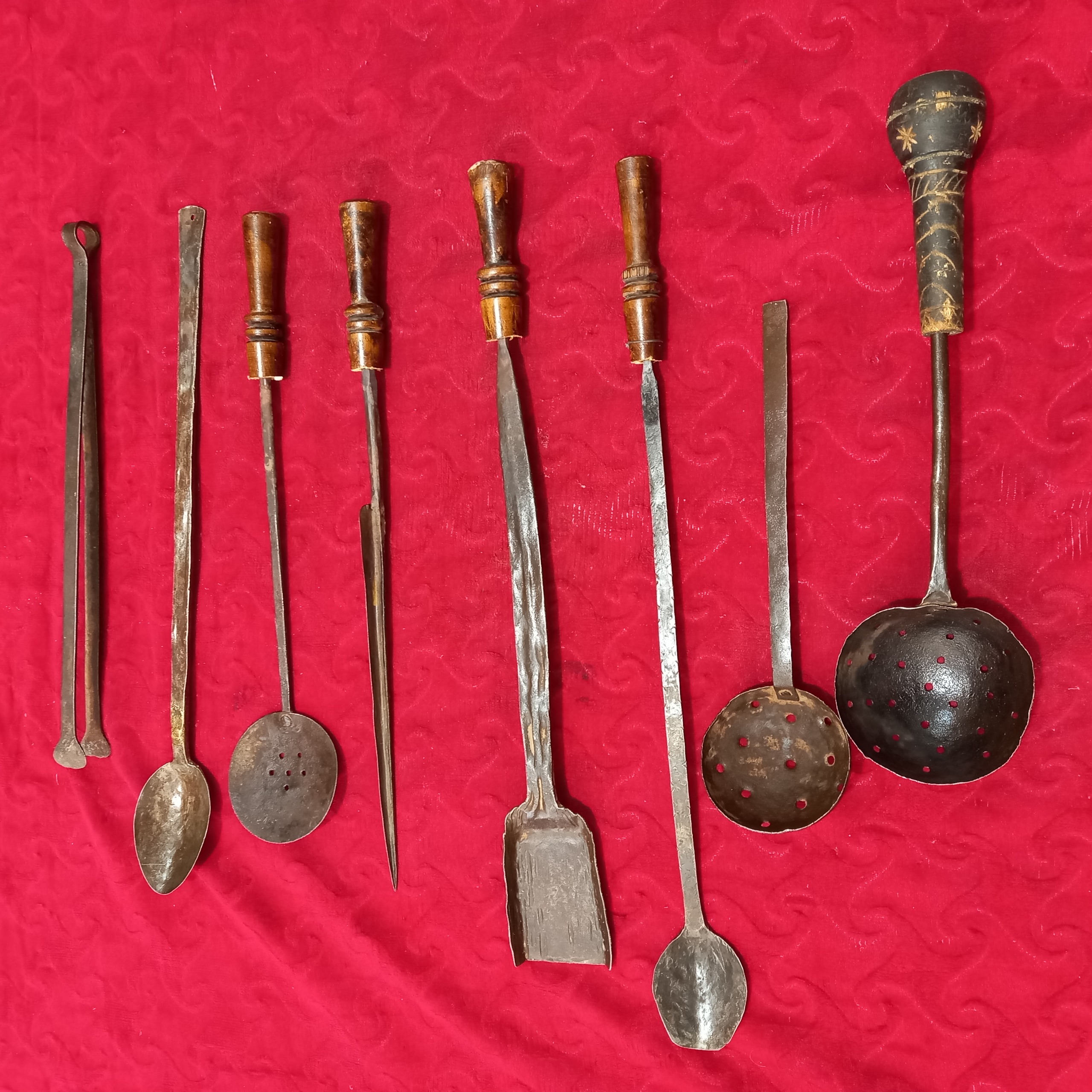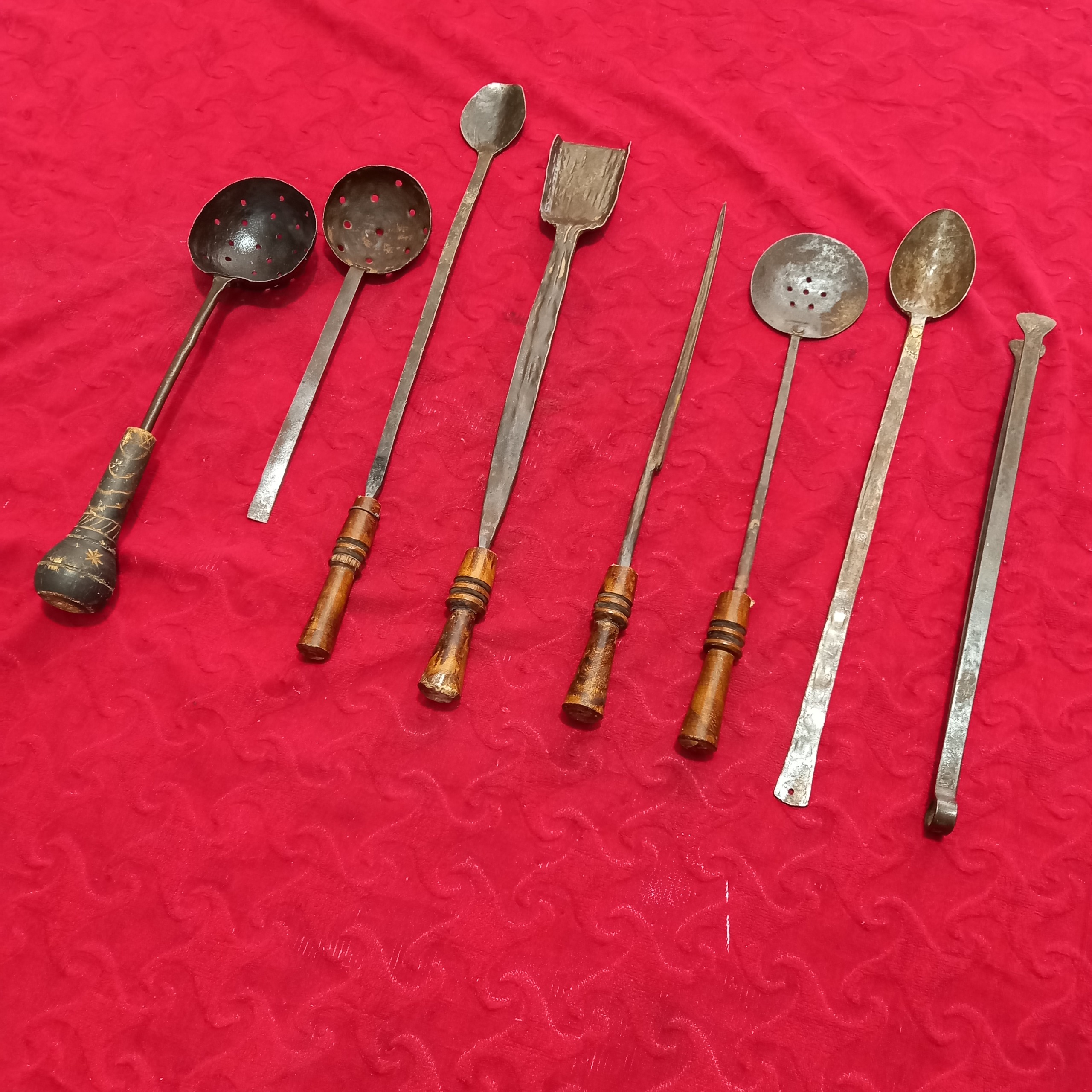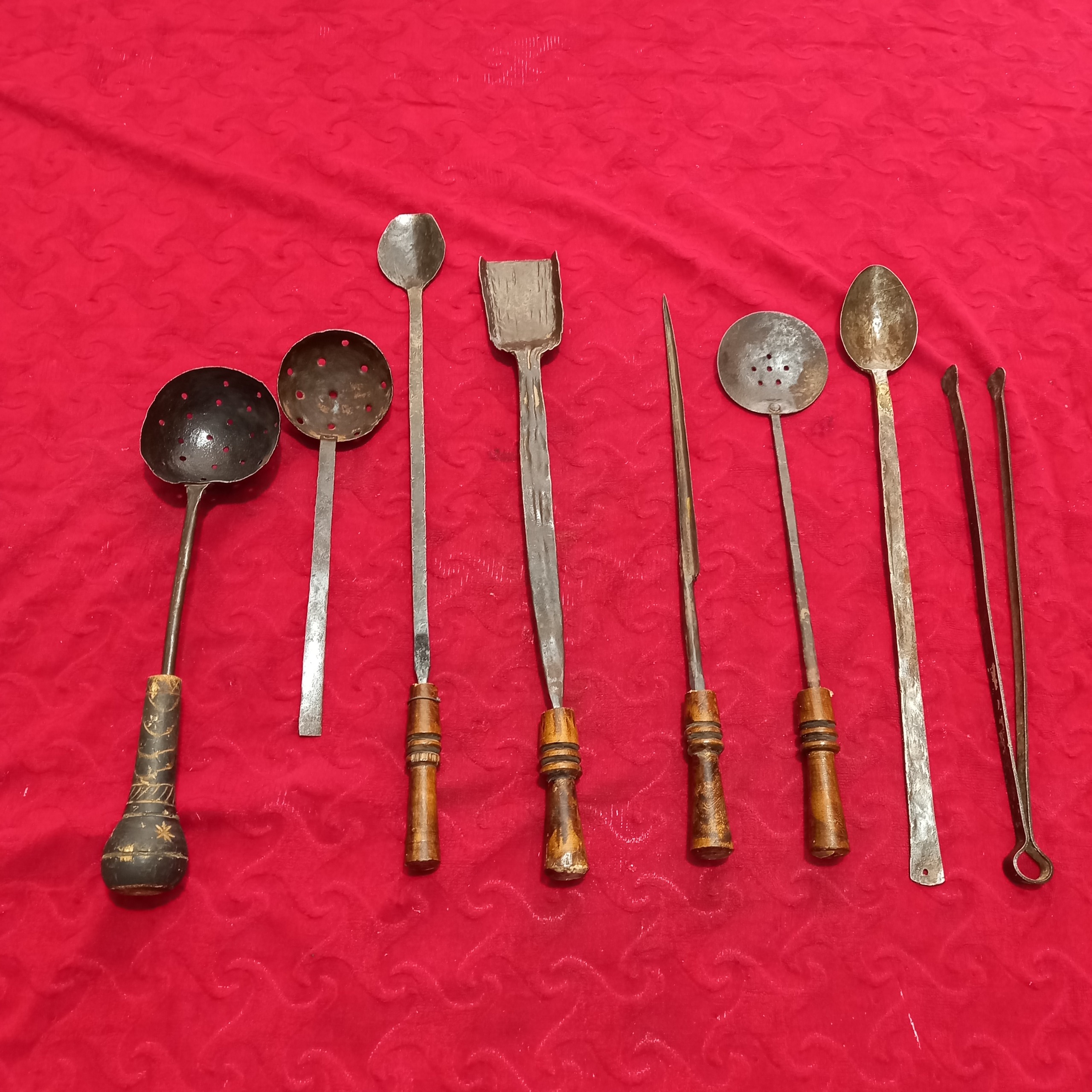 مجموعه زیبا از ابزارهایه آشپزی تماما فولاد دوره قاجار،قیمت برایه مجموع میباشد
