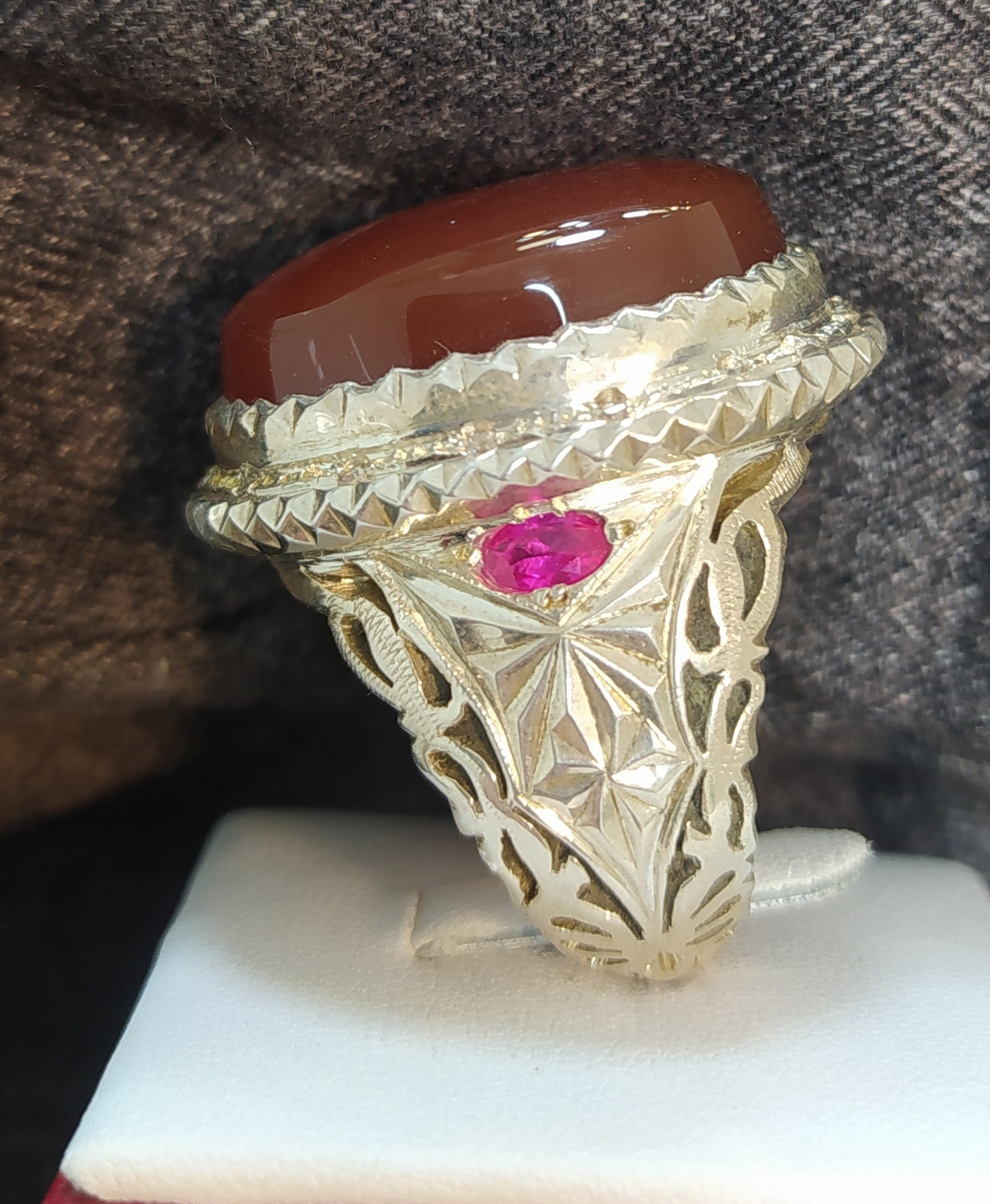 انگشتر نقره مردانه عقیق یمنی سرخ