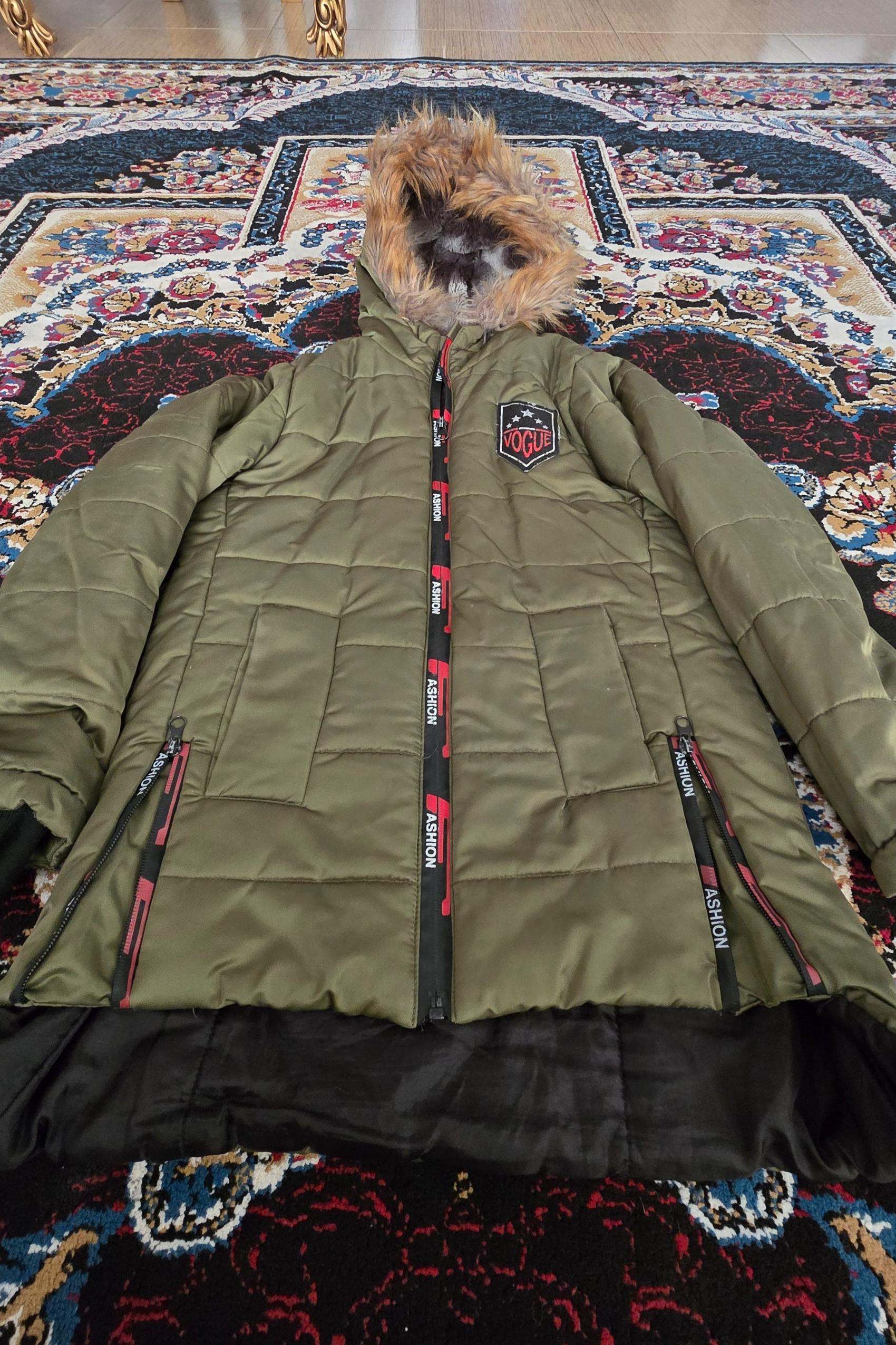 کاپشن پسرانه مدل خلبانی داخل خز سبز رنگ با کلاه