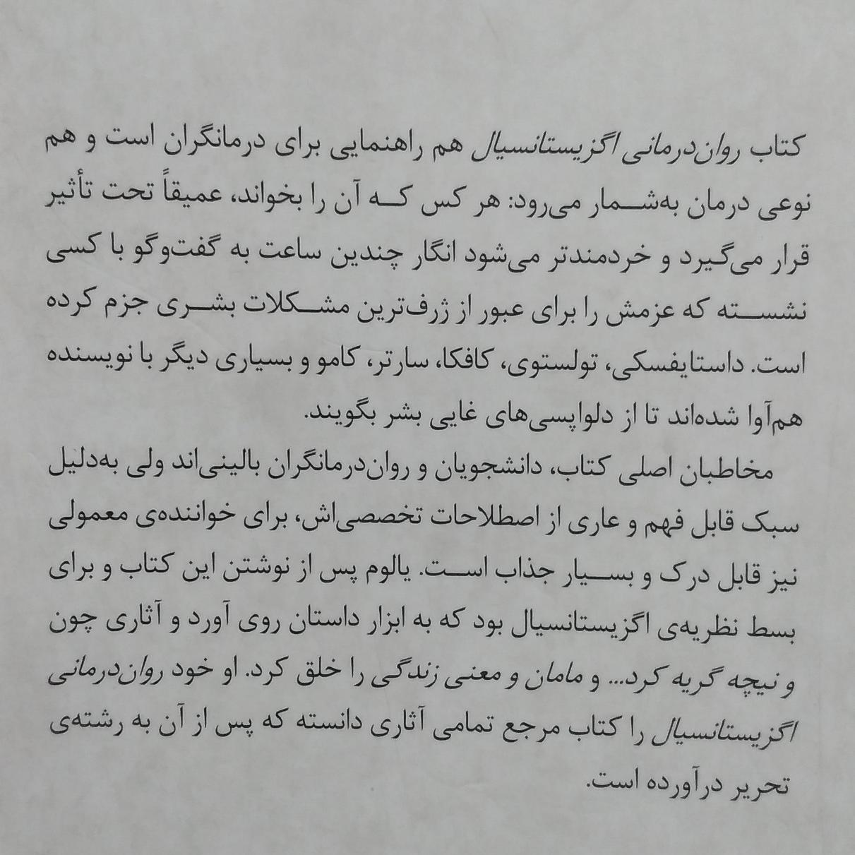 کتاب کارآمد روان درمانی اگزیستانسیال مناسب برای همه افراد کتابخوان و جویای علم که برای عبور از ژرف ترین مشکلات بشری عزمشان جزم است.تا از دلواپسی های غایی بشر رهایی یابند.