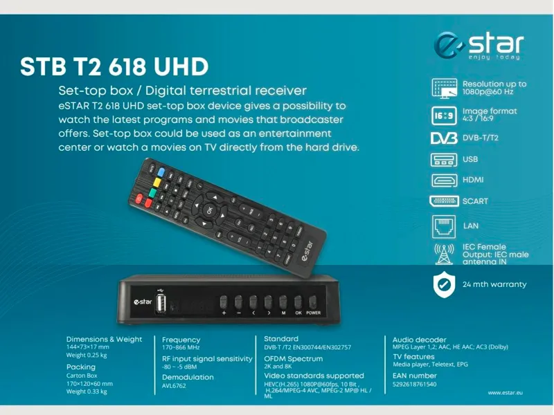 رسیور جدید برای دریافت کانال های هوایی و کابلی، پشتیبانی از خروجی H.265 HEVC  full HD1080P.