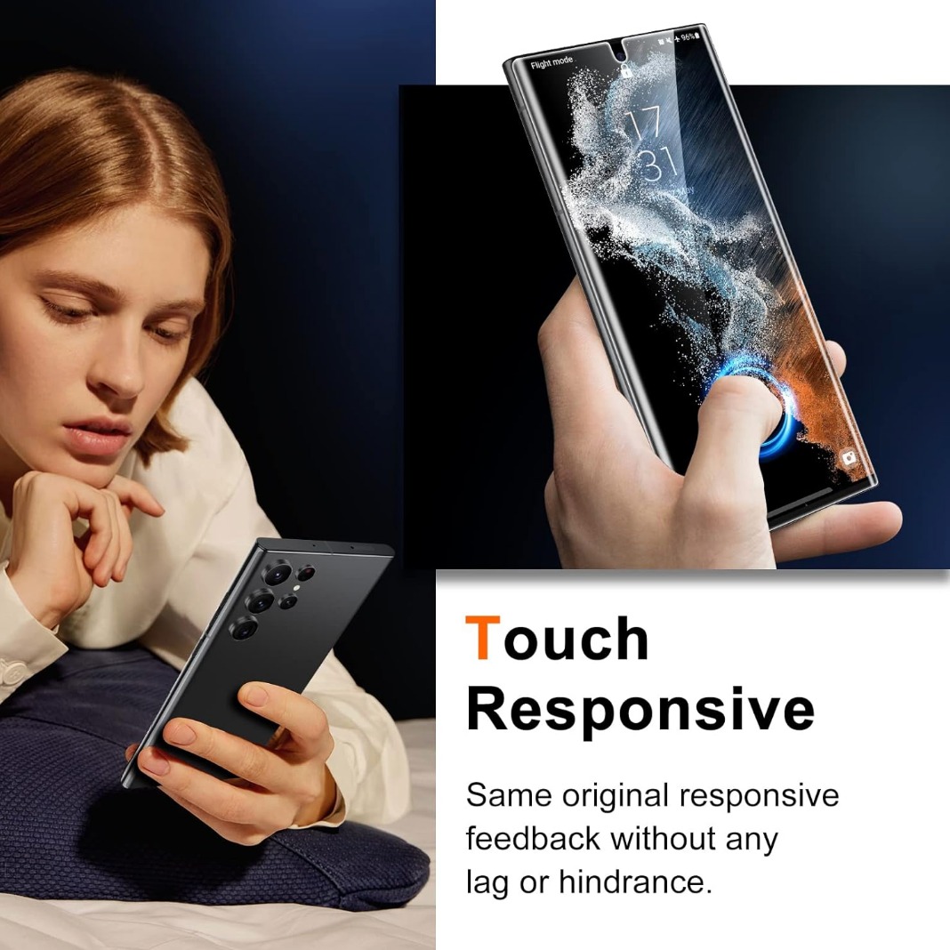 [عملکرد ویژه] در برابر عرق و باقی مانده روغن ناشی از اثر انگشت محافظت می کند. از اثر انگشت صفحه نمایش اولتراسونیک پشتیبانی می کند که امکان پاسخگویی بالای تلفن را فراهم می کند.  مواد منعطف TPU کامپوزیت مقاومت قوی در برابر فشار، پوشش کامل دارد و به طور طبیعی لبه را نمی شکند. با استفاده از فناوری جدید نانو ریباند آهسته، فناوری همجوشی، به طور موثر از صفحه نمایش Galaxy S22 Ultra شما محافظت می کند. خراش ها و حباب ها در عرض 24 ساعت تعمیر می شوند.