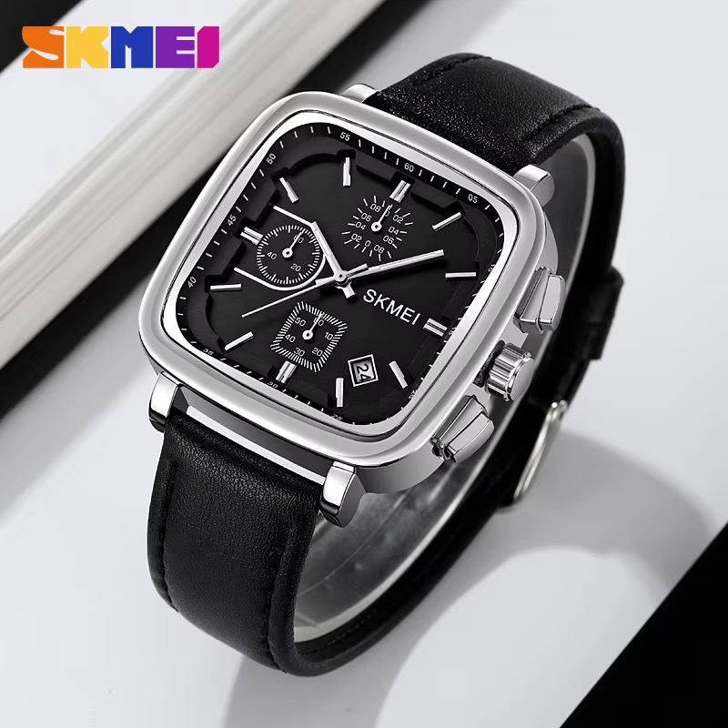 ساعت سه موتوره بند چرم اسکمی 2182