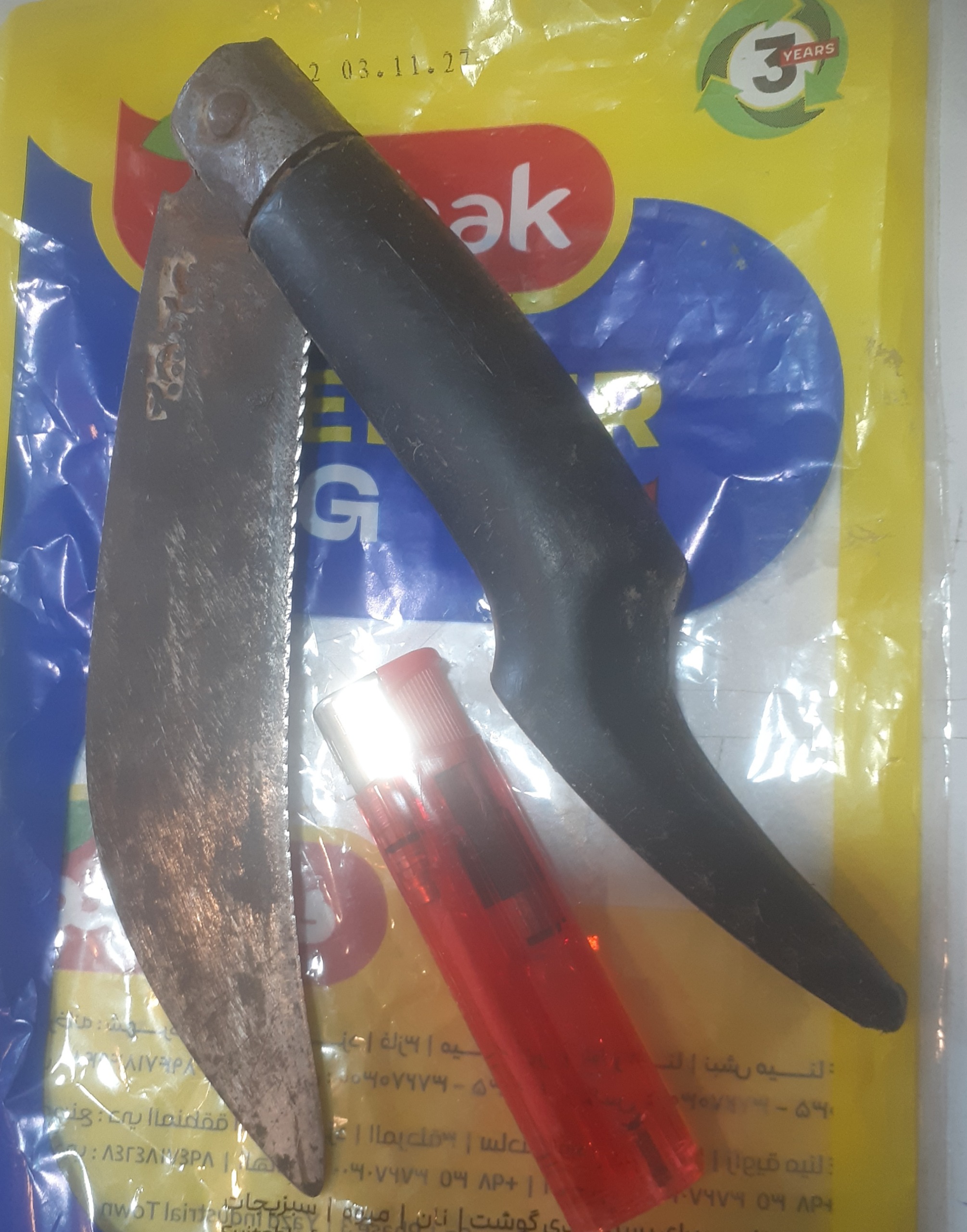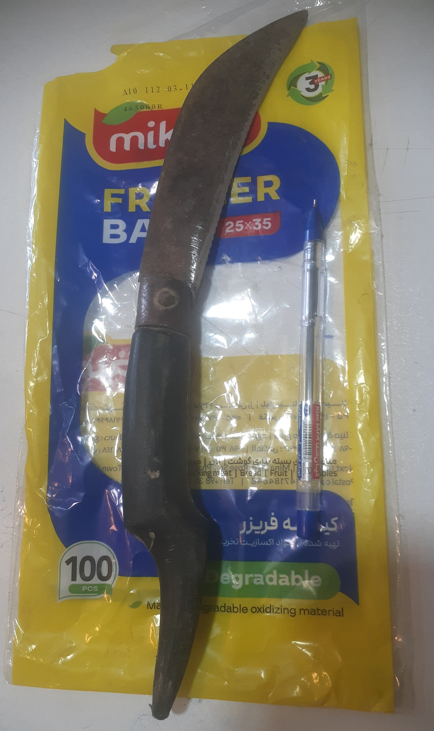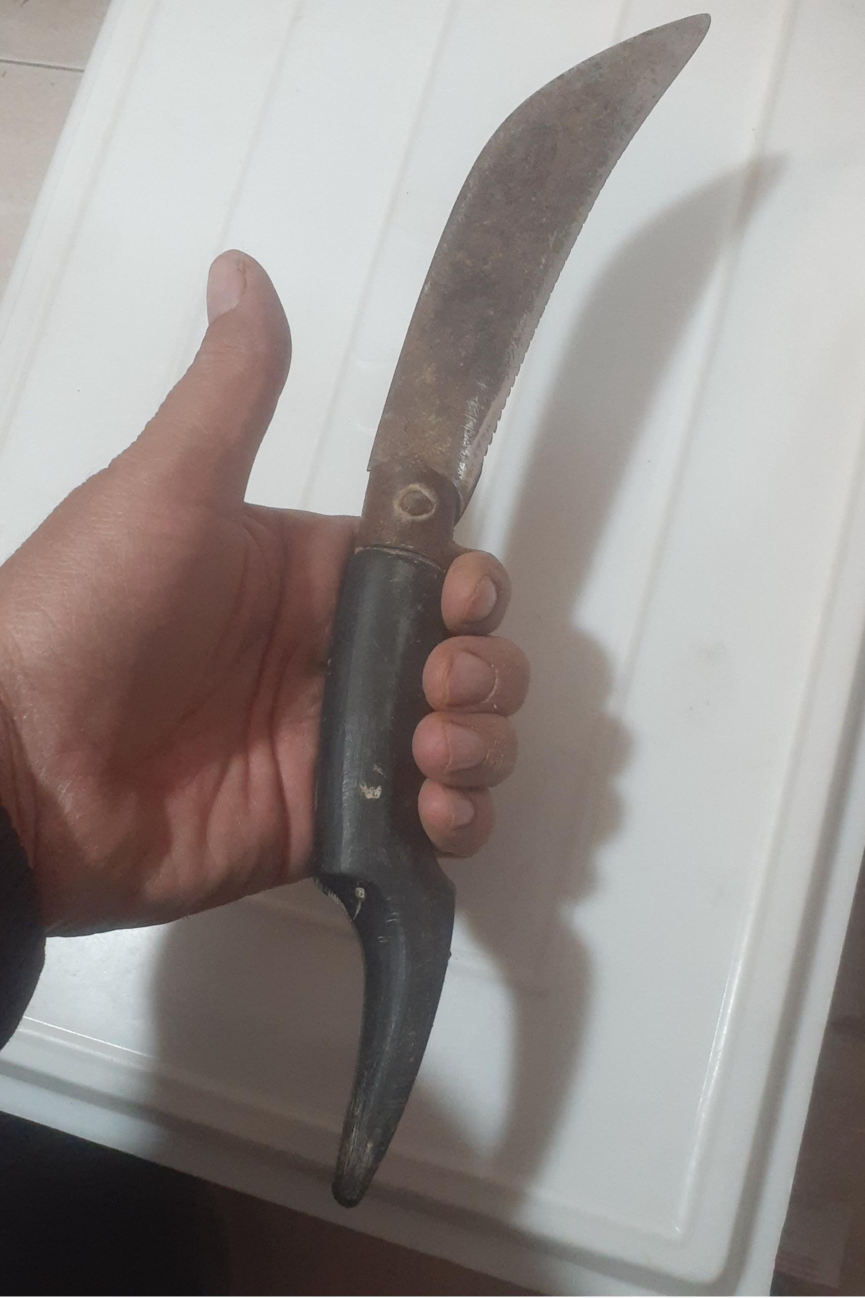 چاقوی اره ای دستساز قدیمی مهردار توضیح دارد