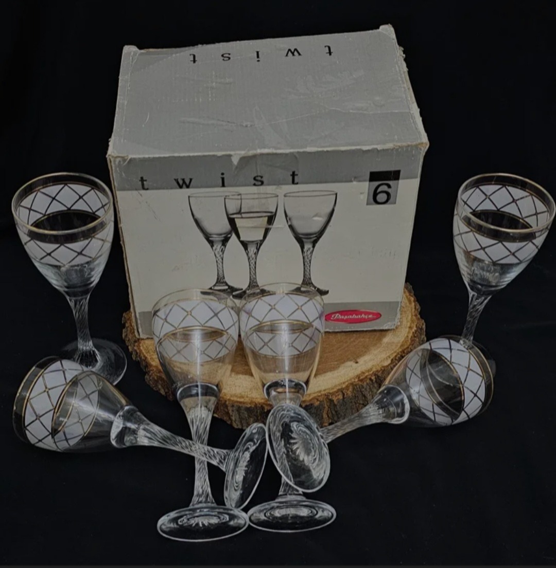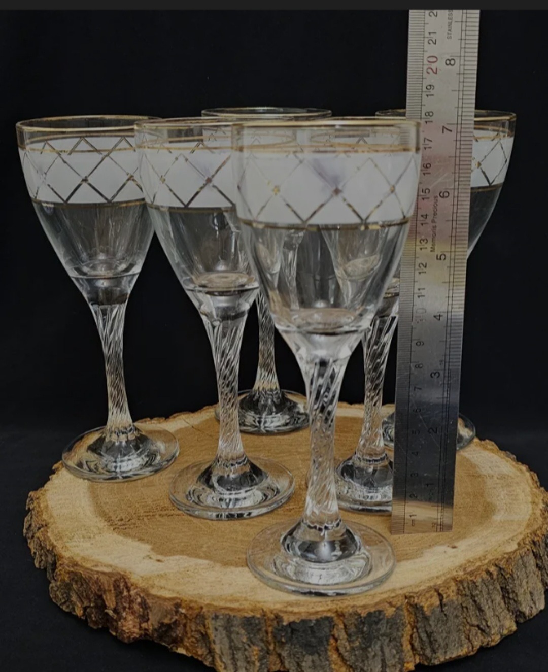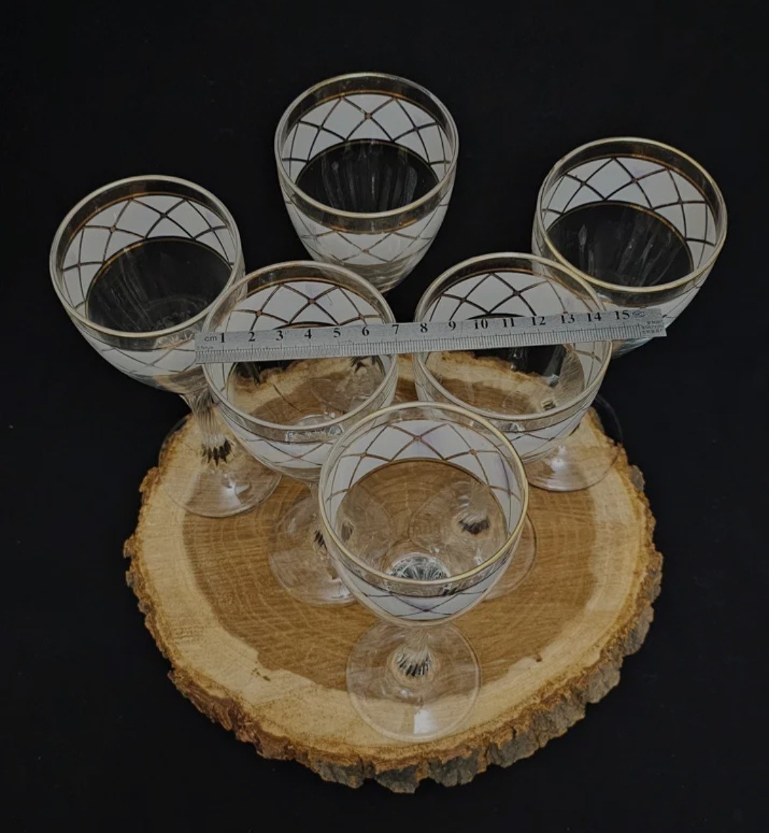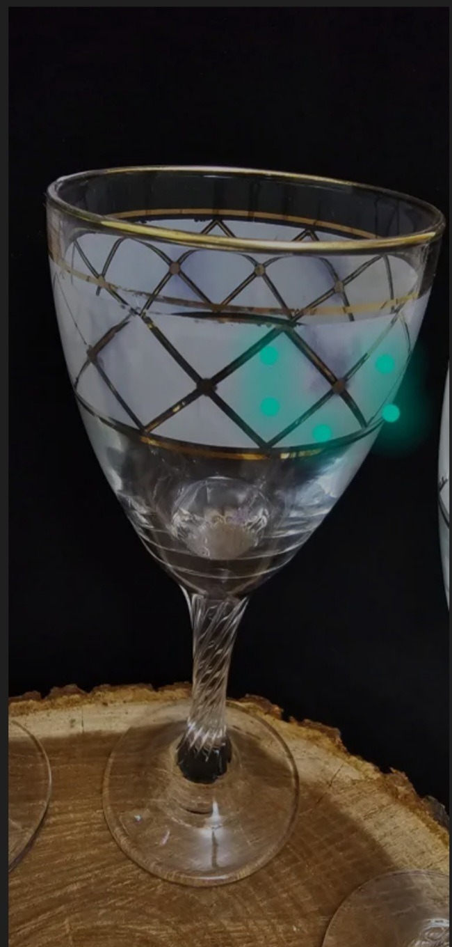 ___یک دست 6عدد جام تویست پاشاباغچه مناسب سرو نوشیدنی طرح طلایی کمیاب همگی سالم وتمیز(روی همگی لکه های سورمه ای داره یکی کم ویکی بیشتر اطلاعی ندارم پاک میشه یانه .احتمالا برای خوده کار جهت اطمینان درخرید ذکرشد).کارتن فرسودس ،کیفیت وابعاد دقیقا طبق تصاویر____لطفا