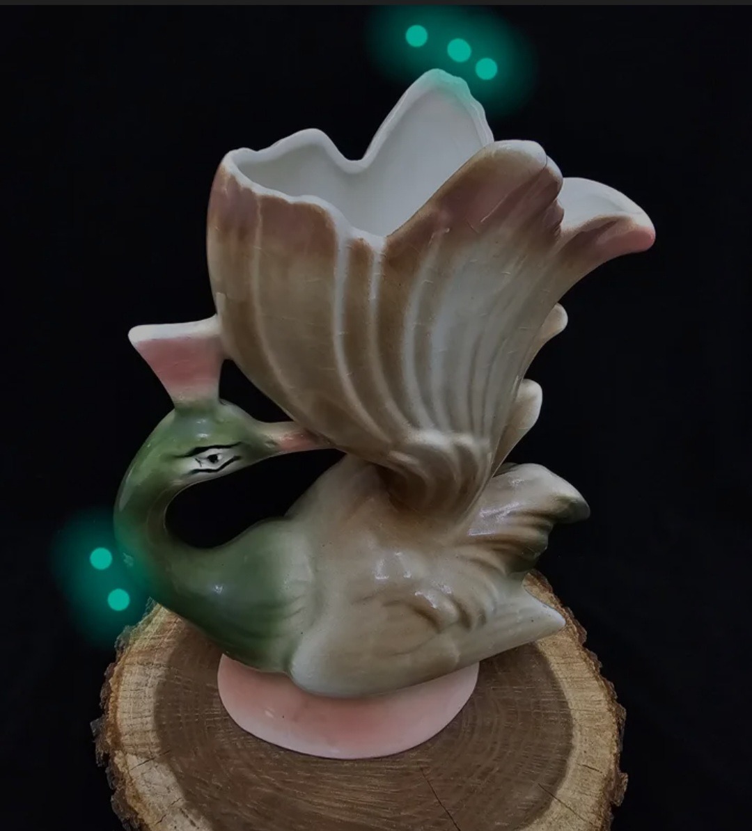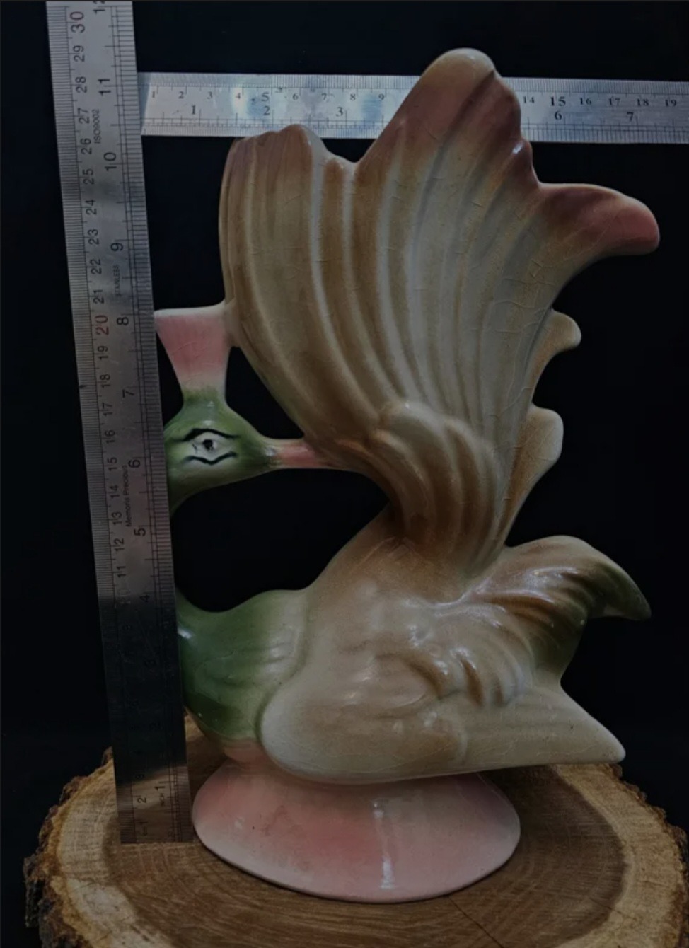 یک عدد گلدان کمیاب با طرح پرنده کمیاب وفوق العاده زیباتر ازتصویر جنس سرامیک قدیم یا سفال باترک لعاب مارک معروف قصایی (لبه گلدان پریدگی داره وبرای دقت بیشتر باعلامت مشخص شده همچنین یک اضافه کارخونه ایی طبق تصویر وعلامت داره مهم نیست وجهت اطمینان در خرید ذکرشد) کیفیت وابعاد دقیقا طبق تصاویر____لطفا به نکات زیر توجه بفرمائید: