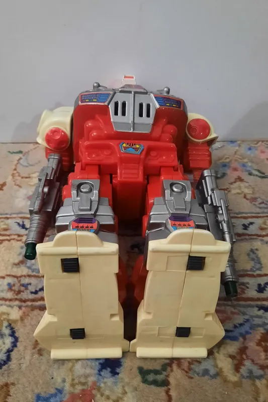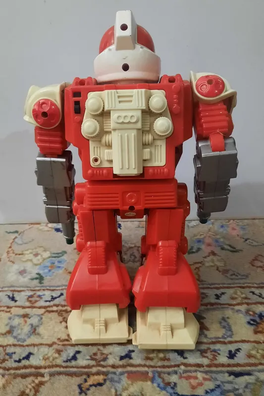 ربات قدیمی محکم باظری خور زیر پاهاش چرخ داره تفنگش روشن وخاموش میشده میچرخه وصدا داره ولی در حال حاضر ایراد داره این کارارو انجام نمیده که باید تعمیر بشه