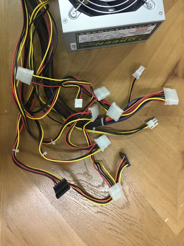 سوکت ها شامل، 24 پین مادربرد یک عدد، 4 پین cpu یک عدد، مولکس شش عدد، ساتا دو عدد، فلاپی یک عدد ( به عکس مراجعه شود)