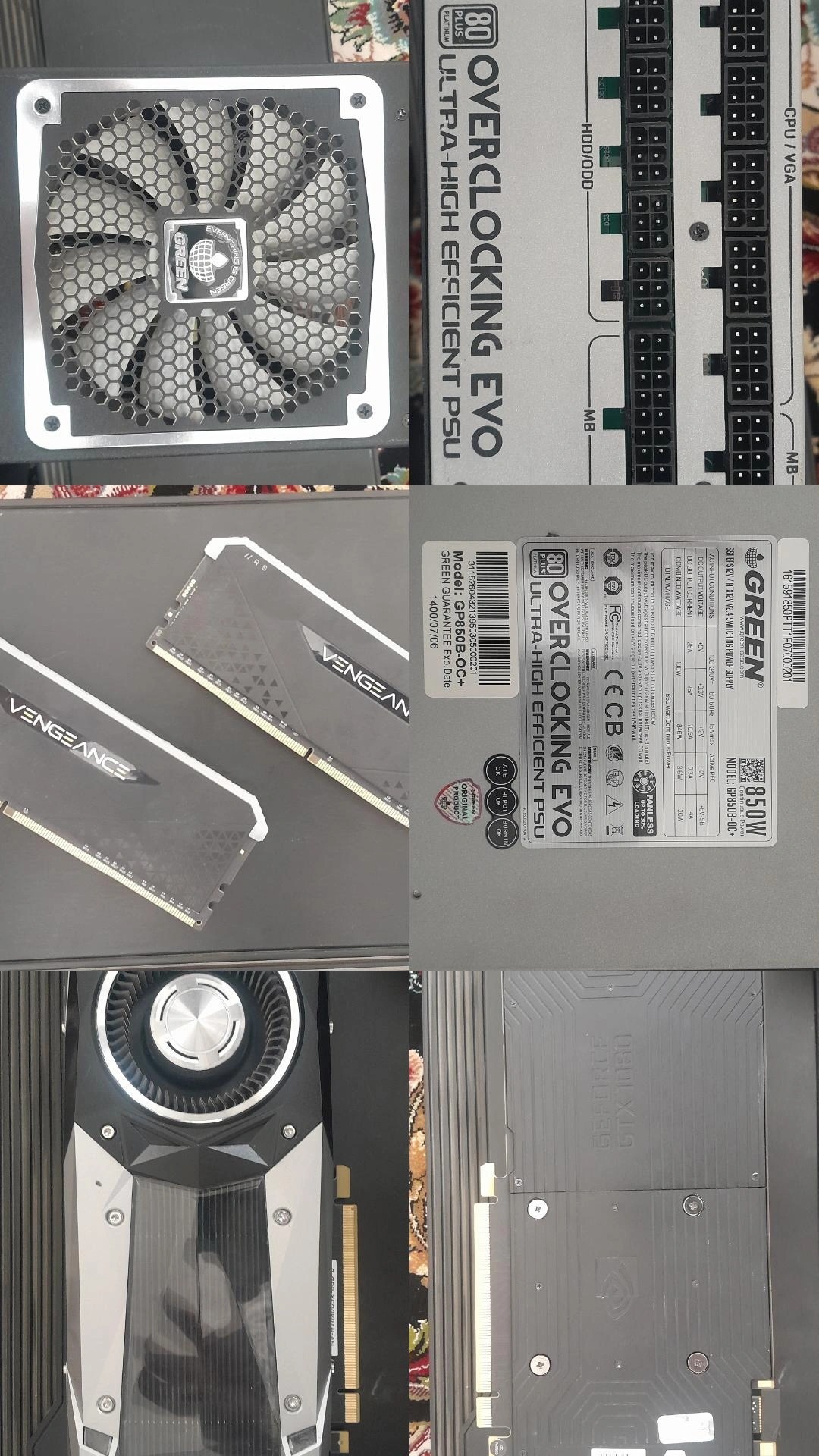 1 عدد پاور گرین 850 وات ماژولار تست نکردم ولی باز کردم قطعه سوخته یا چیزی ندیدم به برق میزنم فن کار میکنه بدون مشکل احتمالا سالم باشه کابل ها کاملا موجوده (ماژولار)