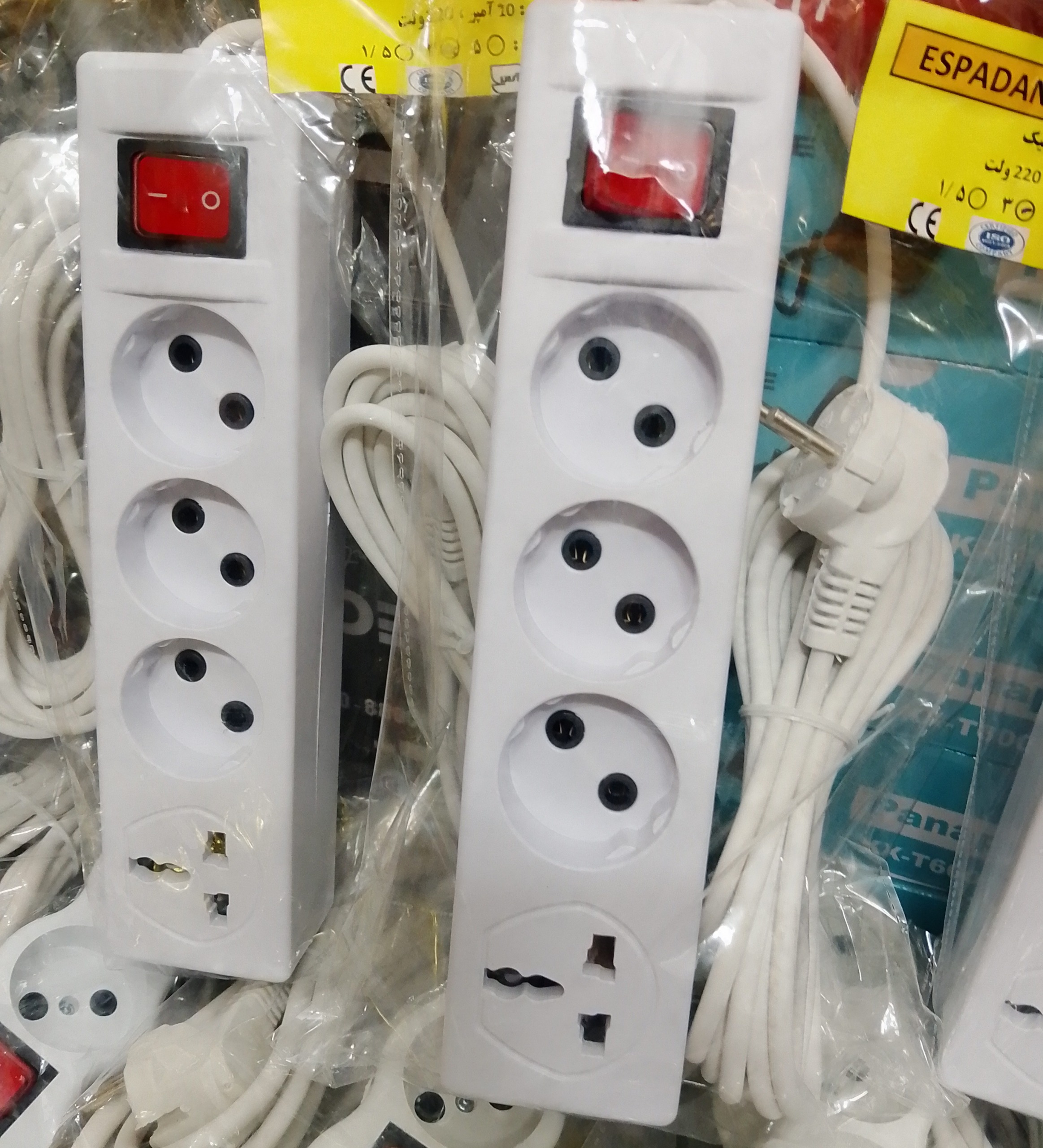 2-سیم سیار رابط برق 4خروجی کلیددارتبدیل 3به 2 دار باسیم 3متری برند سهند کو
