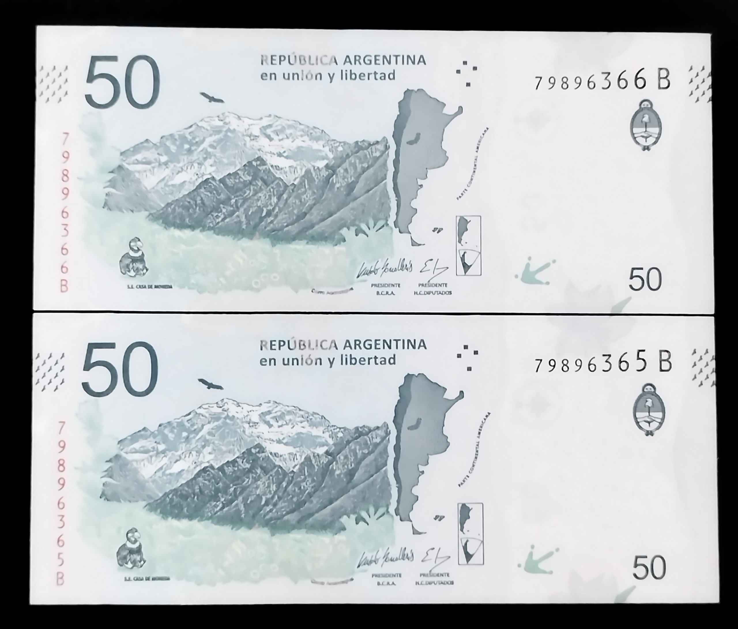 جفت اسکناس 50پزو آرژانتین یادبودی