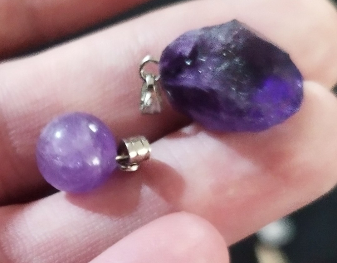 دو عدد آویز سنگهای قیمتی ومعدنی آمتیست وفلوریت