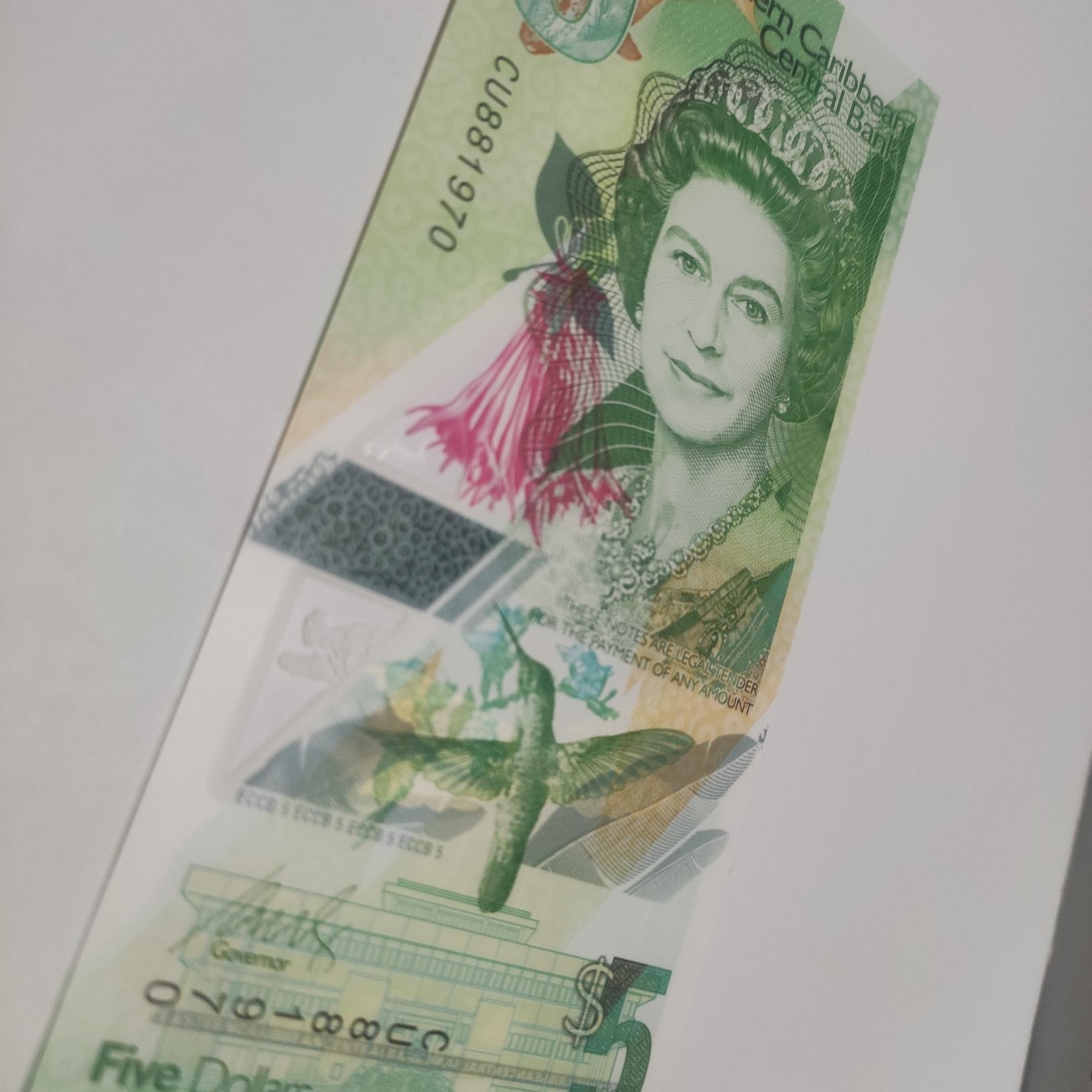 تخفیف اسکناس زیبا پنج دلار کارائیب ملکه پلیمر