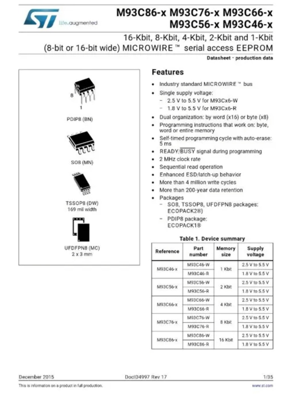 آی سی حافظه 93c86 از نوع EEPROM دارای 1K بایت حافظه 16 بیتی و یا 2K بایت حافظه 8 بیتی میباشد