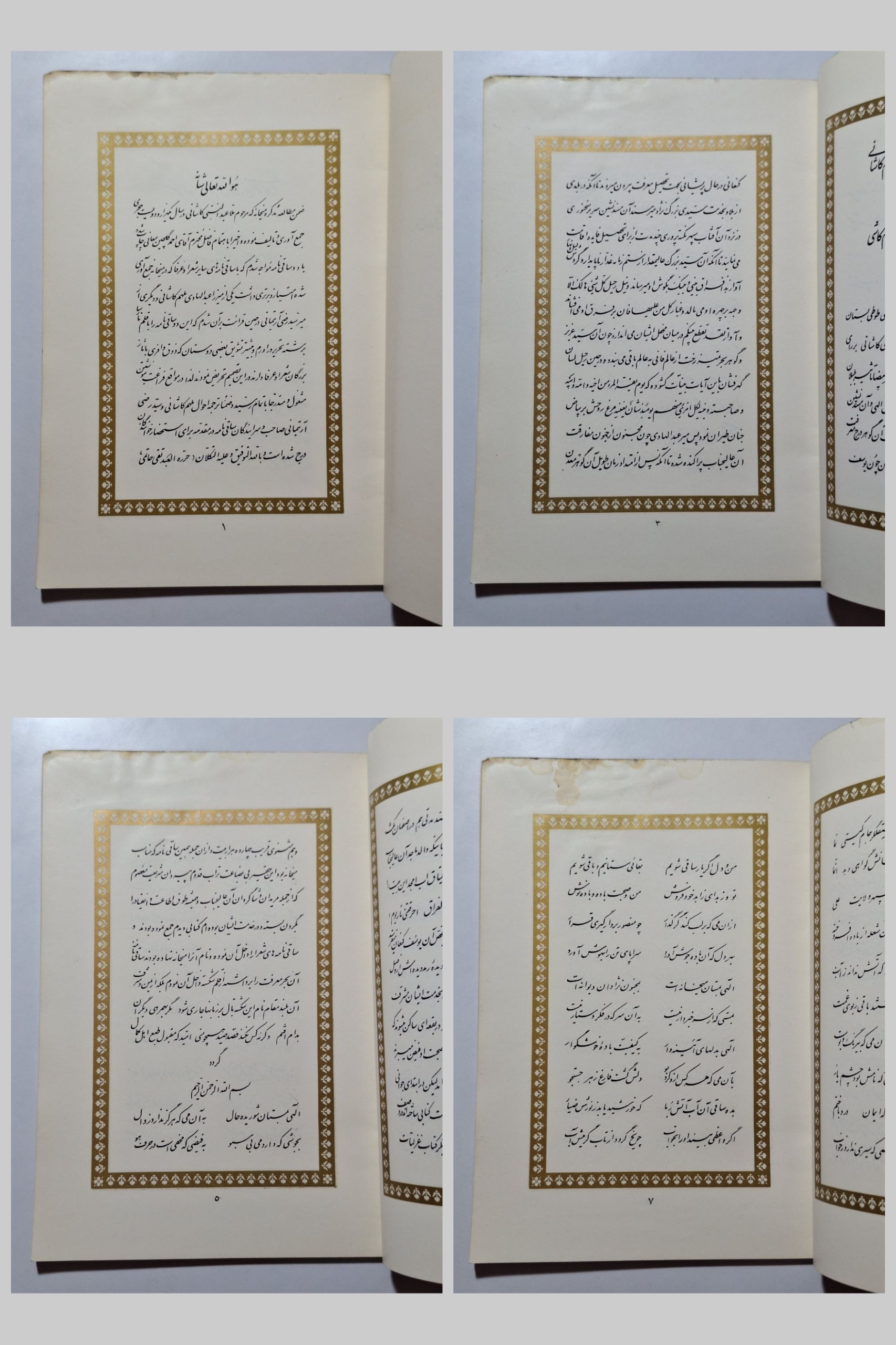 توضیحات: حاشیه بالای صفحات اثر موج و لک کمرنگی دارد.