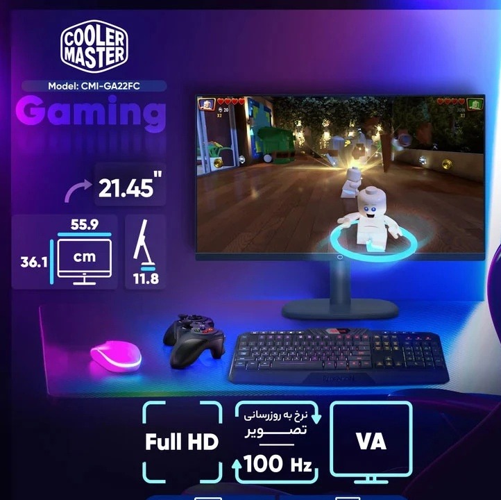 مانیتور گیمینگ کولر مستر مدل GA22FC، یکی از مانیتورهای جذاب و باکیفیت برای گیمرها به شمار میاد. این مدل با صفحهنمایش 21.45 اینچی، از پنل VA بهره میبرد که برای بازیهای گرافیکی و محیطهای کمنور بسیار مناسب است. از ویژگیهای برجسته آن میتوان به کنتراست بالا، گستره رنگی زیاد و زاویه دید گسترده اشاره کرد. این مانیتور با رزولوشن Full HD، پوشش رنگی 105 درصدی sRGB، پوشش 75 درصدی DCI-P3 و 73 درصدی Adobe RGB، توانایی نمایش دقیق و طبیعی رنگها را دارد. با نرخ نوسازی 100 هرتز و زمان پاسخدهی یک الی چهار میلیثانیهای، مانیتور GA22FC تجربه گیمینگ استاندارد را بدون تاری حرکت امکانپذیر میکند. این ویژگیها، خصوصا در بازیهای شوتر آنلاین و رقابتی، به کارتان میآیند. به علاوه، پشتیبانی از فناوریهای AdaptiveSync و Overdrive، کمک میکند تا پارگی تصویر و تاری حرکت در بازیهای سریع به حداقل برسد. این مانیتور از تکنولوژی کاهش نور آبی مضر برای محافظت از چشمها در استفاده طولانیمدت بهره میبرد. همچنین، با پورتهای HDMI 1.4 و VGA، میتوان آن را به انواع دستگاهها و کنسولها متصل کرد. فناوری (DCR (Dynamic Contrast Ratio نیز به بهبود کنتراست تصویر در شرایط مختلف کمک میکند و تجربه بصری دقیقتری را ارائه میدهد. GA22FC انتخابی ایدهآل برای گیمرها و کاربران حرفهای است؛ کسانی که به دنبال عملکرد بالا و کیفیت تصویر عالی در بازیهای سریع و گرافیکی هستند. با مصرف انرژی پایین (24 وات) و طراحی ارگونومیک، این مانیتور برای استفاده در فضاهای مختلف نیز مناسب است.