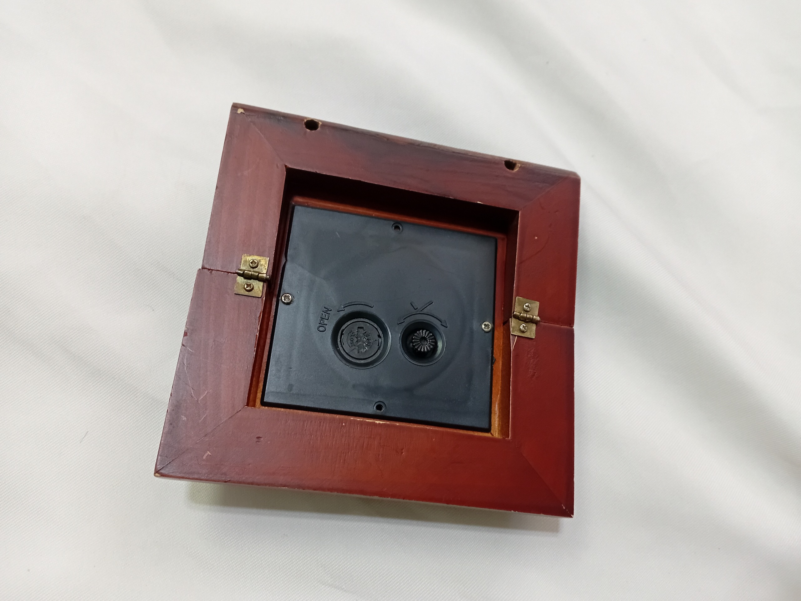 ساعت قدیمی بدنه چوبی سالم کار میکنه تک باتری سکه ای میخوره