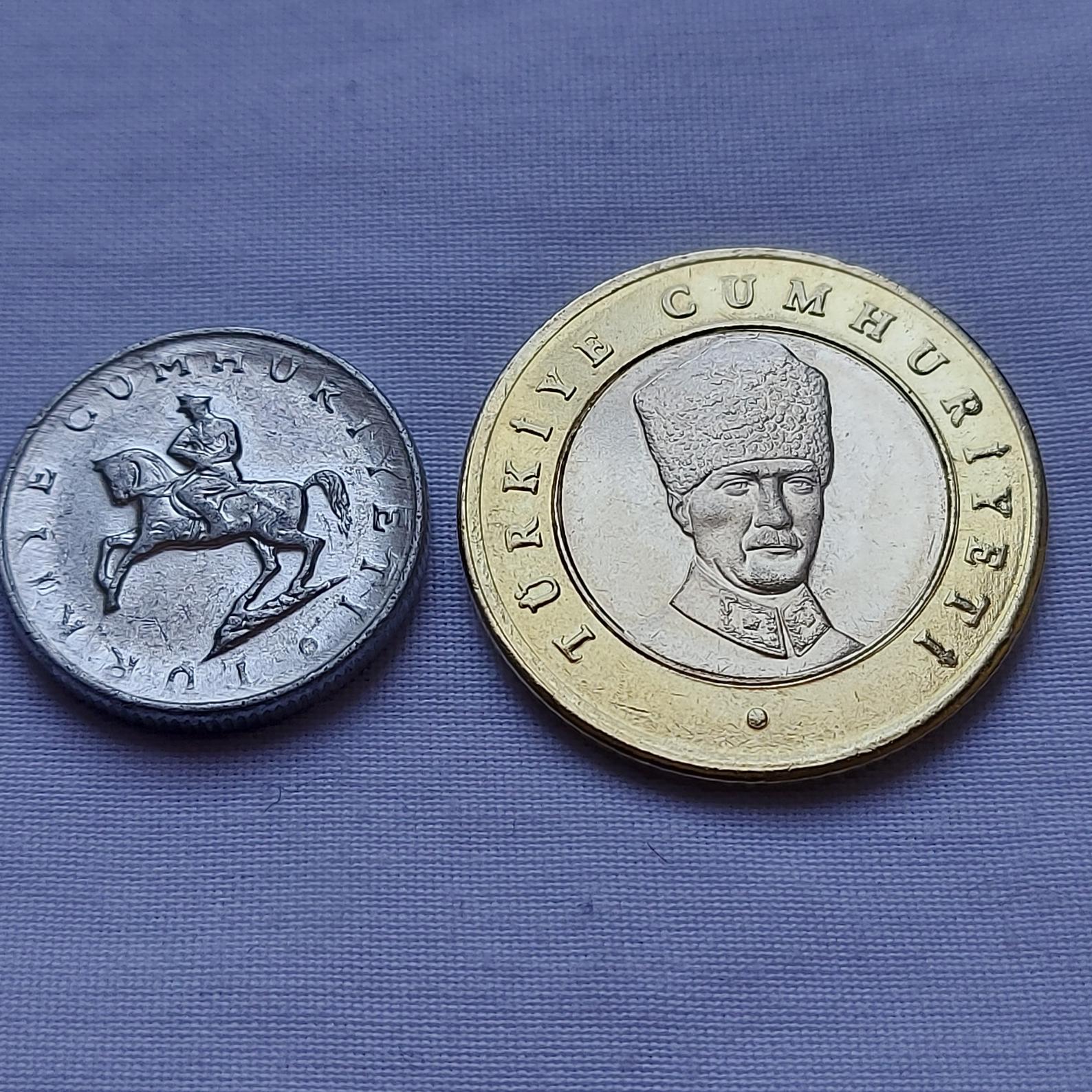 5 لیر کوچک تصویر اسب سواری آتاترک هست و بین 2 تا 5 دلار ارزش دارد و جنسش نیکل هست
