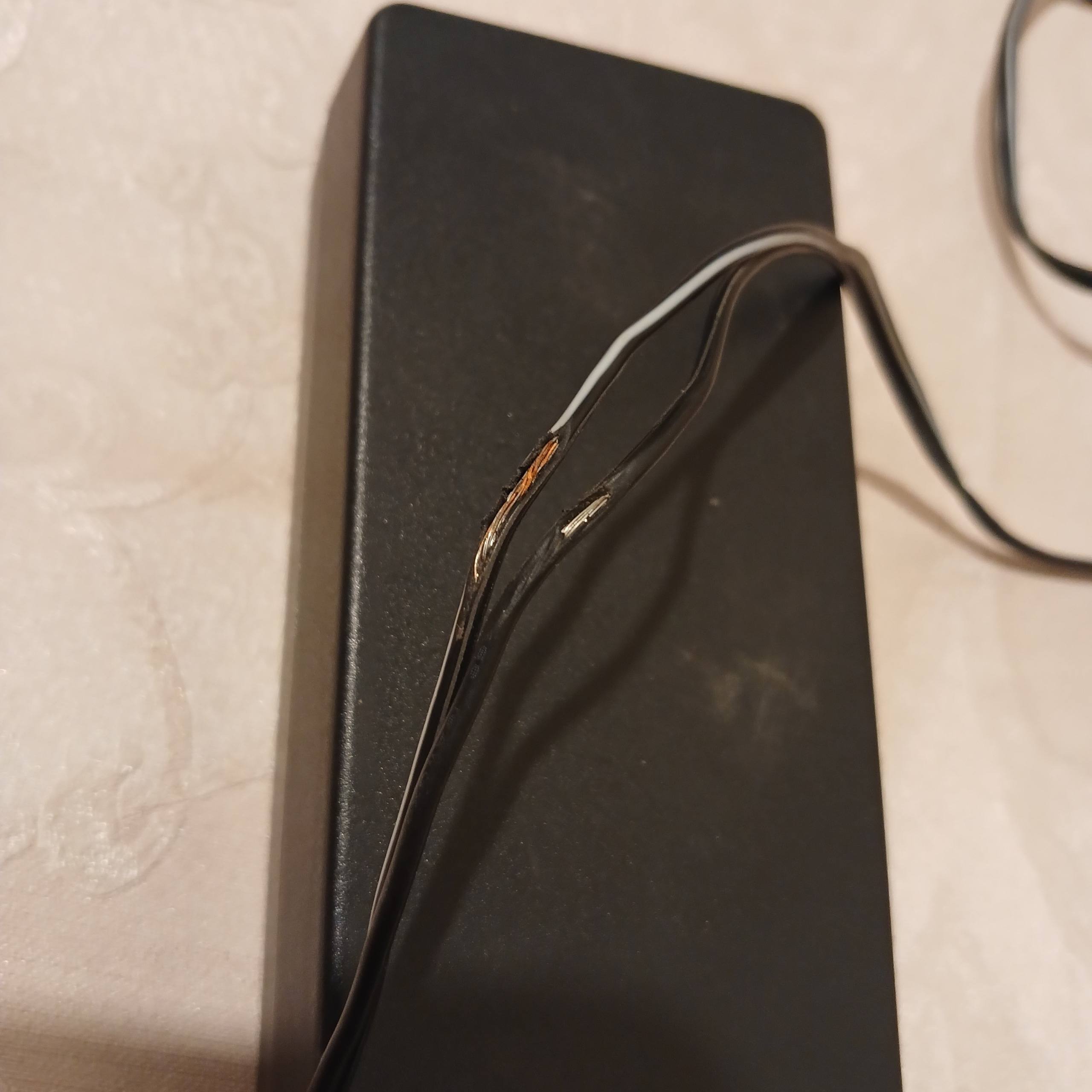 مطابق تصویر آخر آگهی یه خراش روی سیم افتاده و روکش پلاستیکی سیم کمی کنده شده ولی هیچ قطعی نداره و خود رشته سیم ها سالم هستند