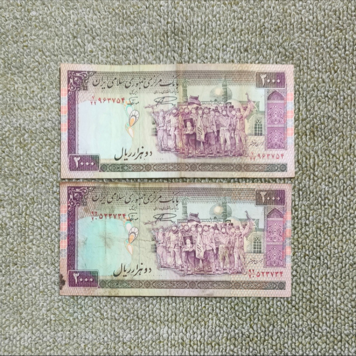 دو اسکناس 2000 ریالی سری انقلابی (معروف به دویست تومنی تظاهرات) با تصویری از رزمندگان سبزواری بر روی اسکناس و تصویر کعبه در پشت اسکناس. اسکناس ها فاقد خط خوردگی خودکار یا پارگی هست ولی چند لکه بر روی یکی از اسکناس ها هست و در تصاویر هم مشخصه و لازمه در زمان خرید مدنظر داشته باشید. قیمت برای هر دو اسکناس با هم است.