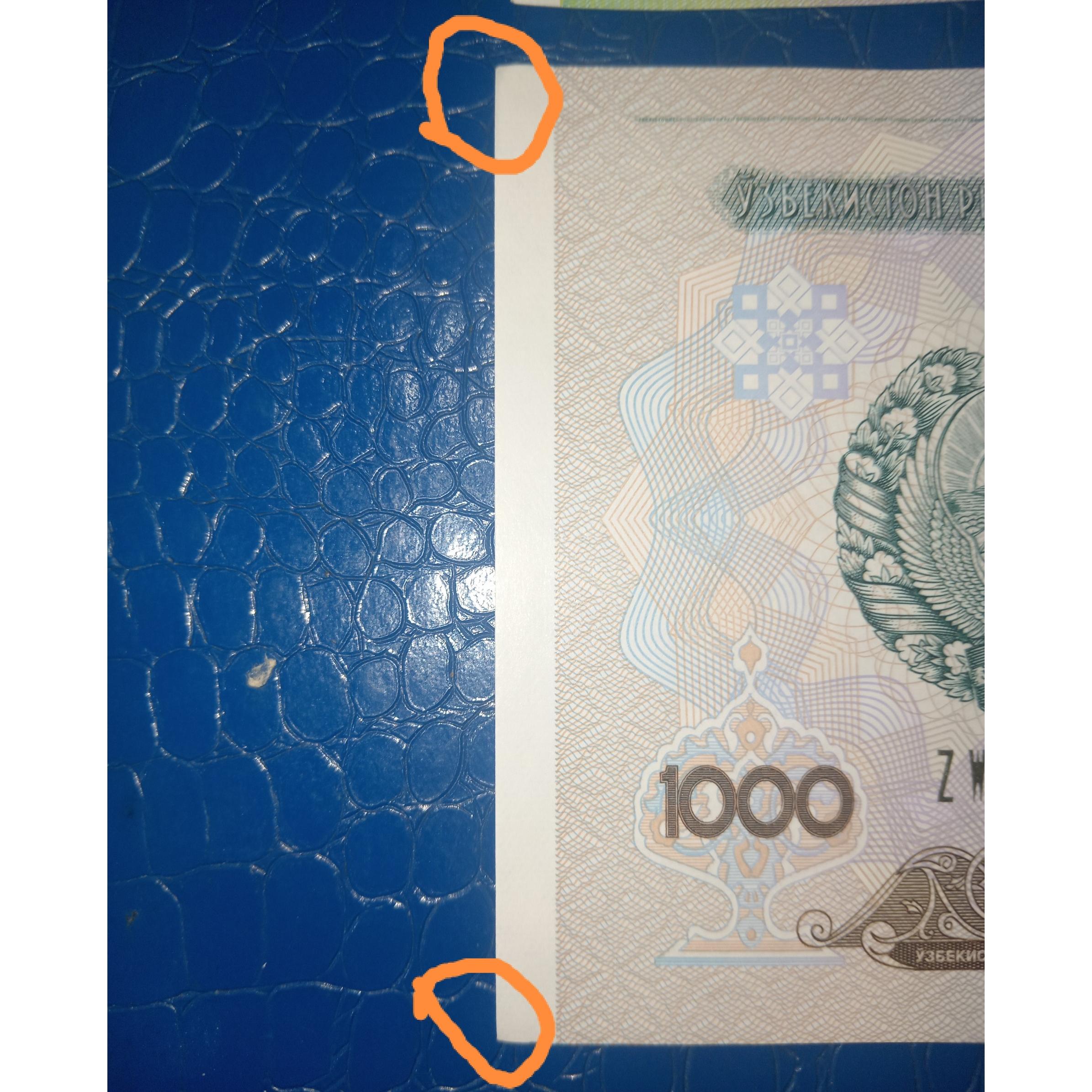 در حد چند میلی متر گوشه بالا و پایین اسکناس 1000 سوم، شکستگی خفیف دارد