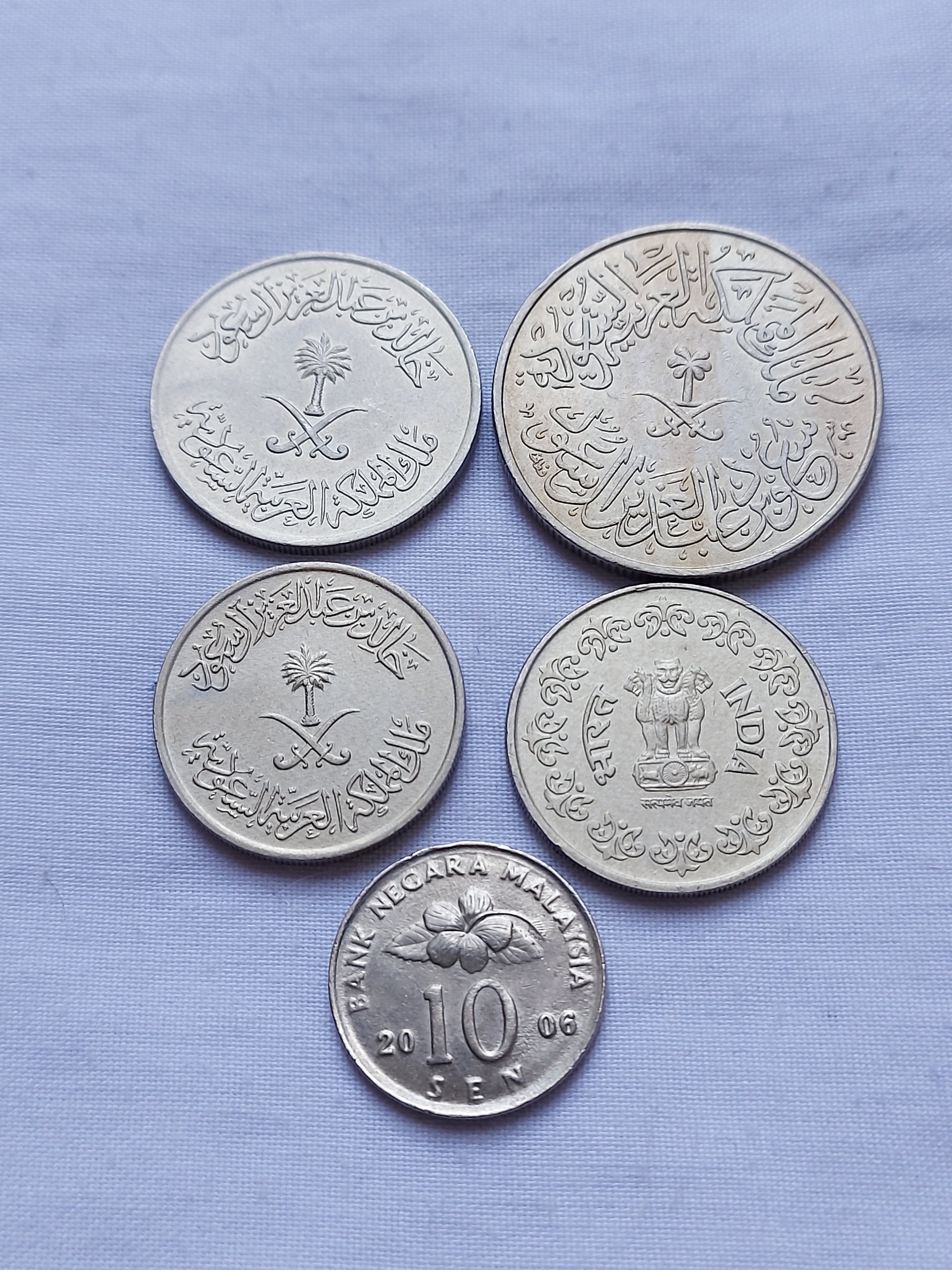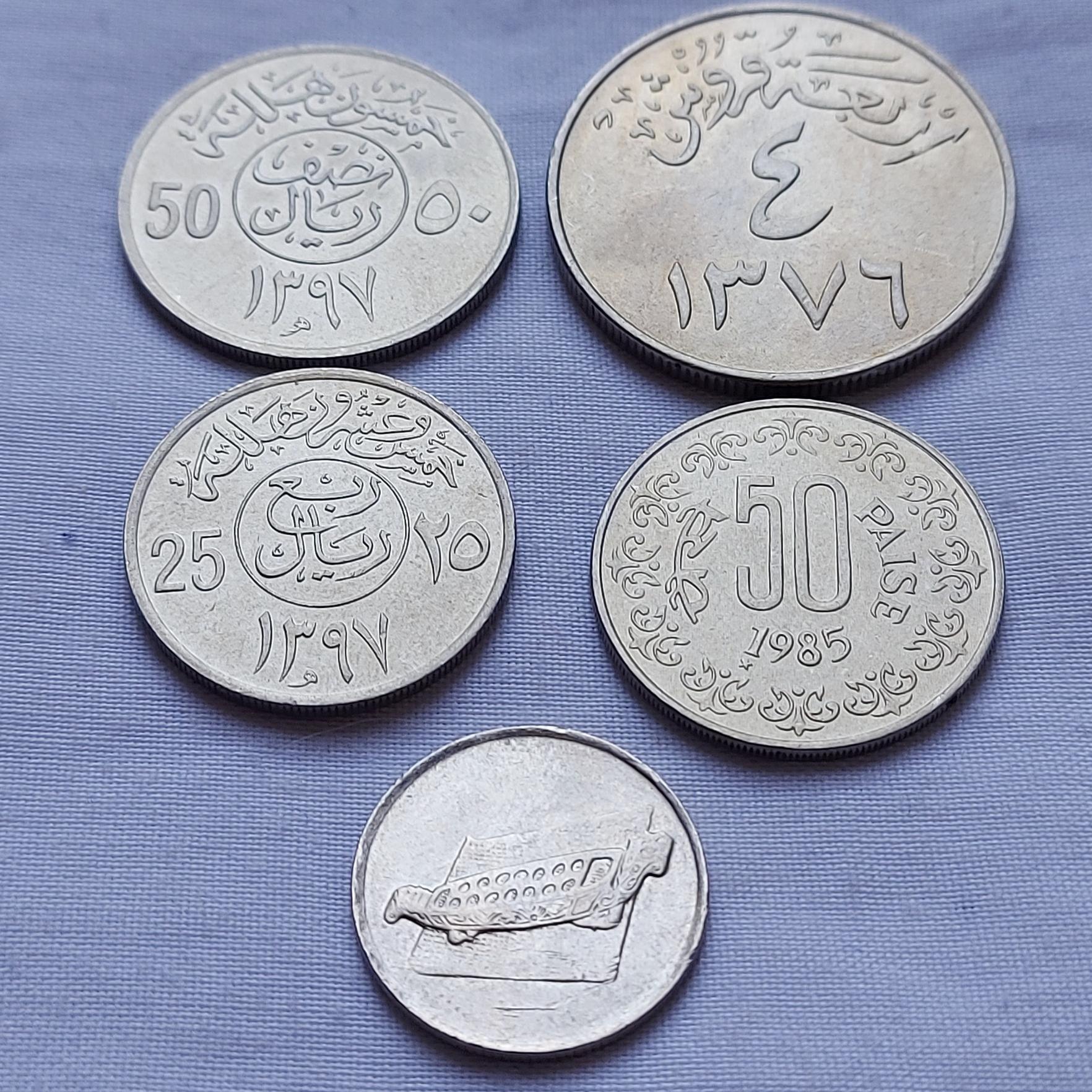 سکه های عربستان 1376 و 1397 قمری - سکه هند 1985 میلادی - سکه مالزی 2006 میلادی