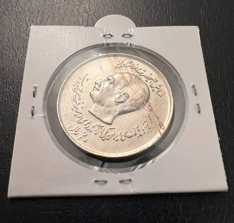 سکه دو کله پهلوی تاسیس بانک ملی ارور چرخش 45درجه