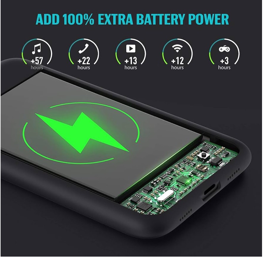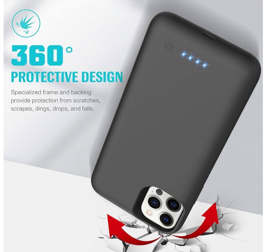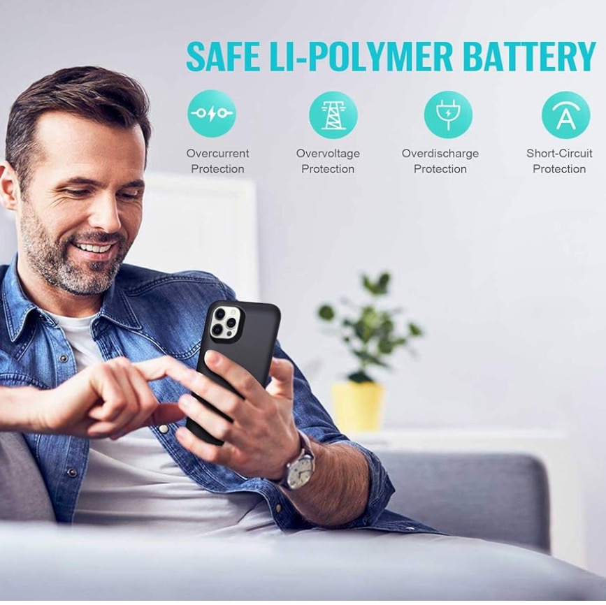 قاب باتری با ظرفیت بالا: قاب باتری 6800 میلیآمپر ساعت، 190 ساعت حالت آماده به کار، 17 ساعت مکالمه، 13 ساعت پخش ویدیو، 60 ساعت پخش موسیقی یا 15 ساعت وبگردی اضافی را برای تلفن همراه شما فراهم میکند. قاب باتری برای آیفون 12 / آیفون 12 پرو، مخصوص مدل 6.1 اینچی.