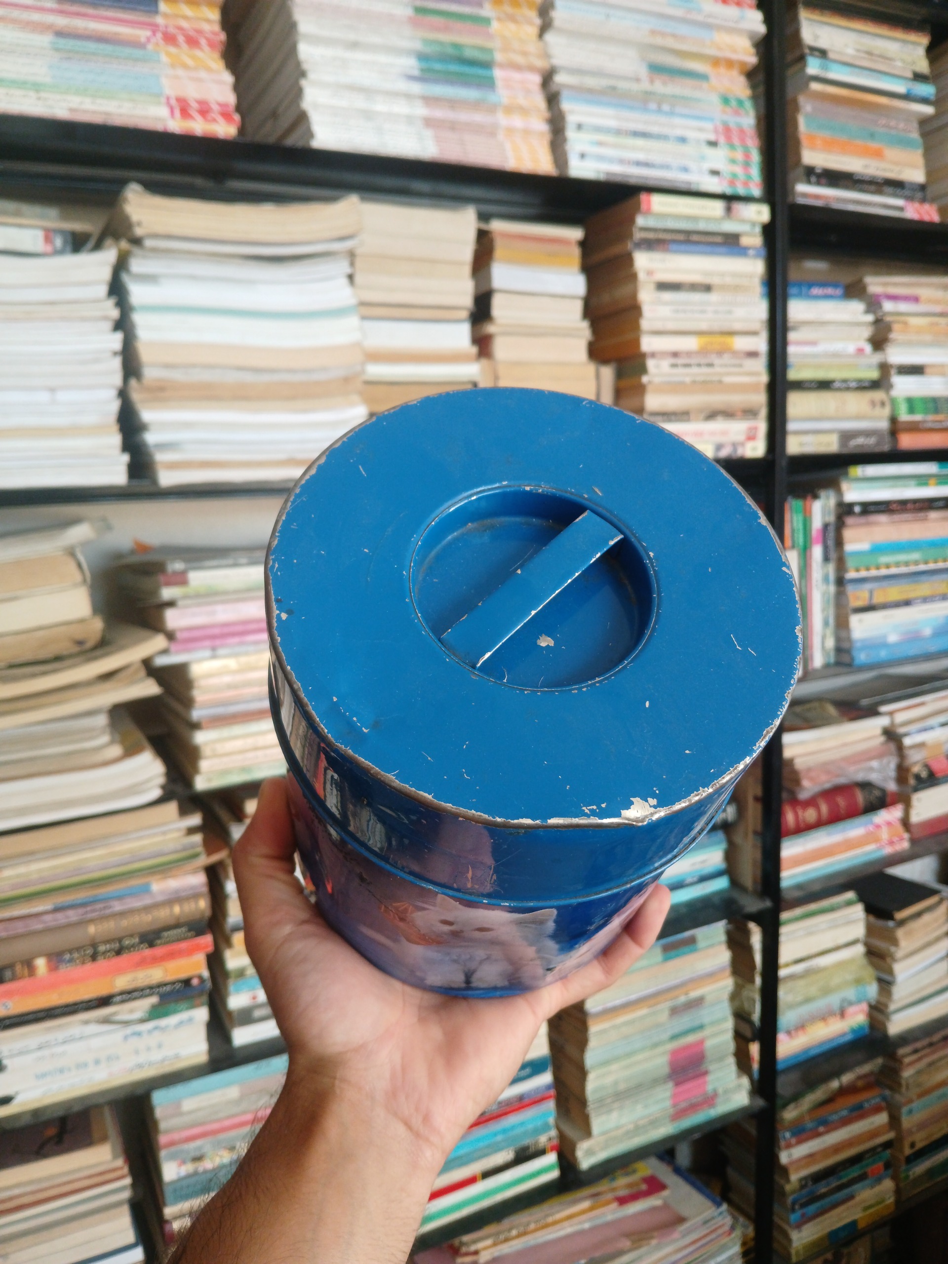 قوطی بزرگ آهنی فلزی قدیمی بسیارنایاب گربه ای