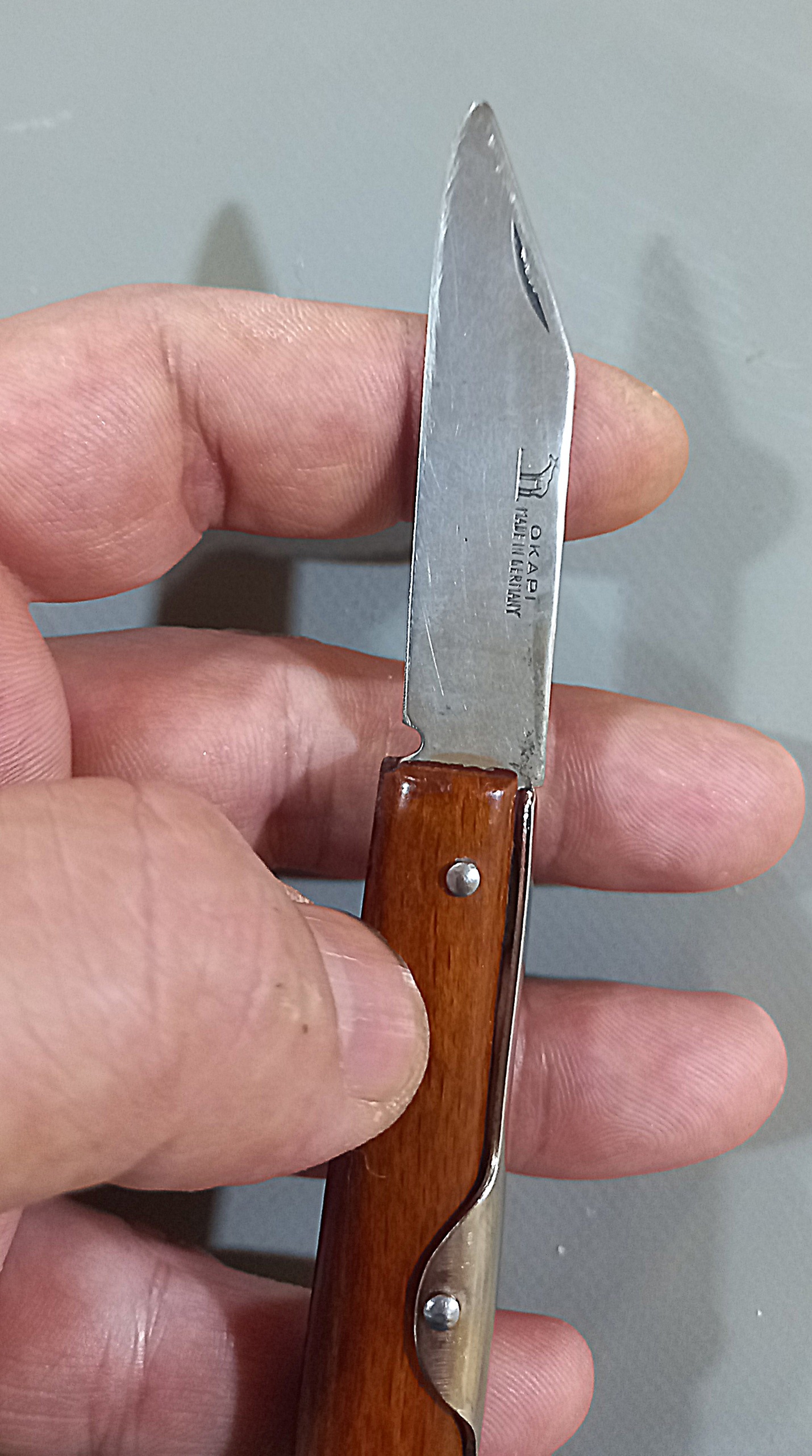 چاقوی آلمانی اوکاپی سایز کوچک نونو .که البته درحد نو زدم ..بسیار کمیاب و کلکسیونی. دقیقا مطابق تصاویر..چاقوی آلمانی اوکاپی تو این سایز اینجوری تمیز مونده باشه خیلی کمیابه